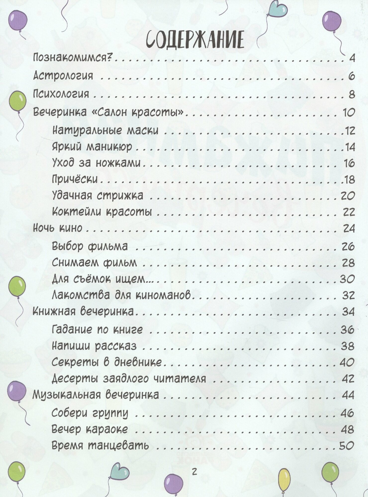 Очень понравилась книга. Покупали в подарок подруге, а потом дочь захотела себе тоже. Идеальна для девочек от 8-14 лет. В очень веселой, простой форме рассказывается не только, как организовать вечеринку, но и о том, как ухаживать за собой, как расширить свои хобби, что можно приготовить и как развлечь себя и своих подруг. Книга красочная, модная, хороша иллюстрирована, приятна во всех отношениях.