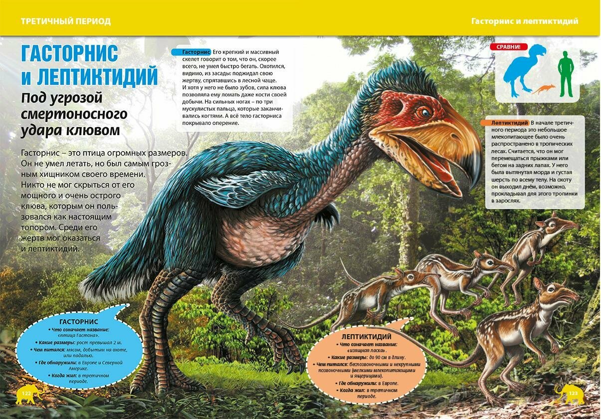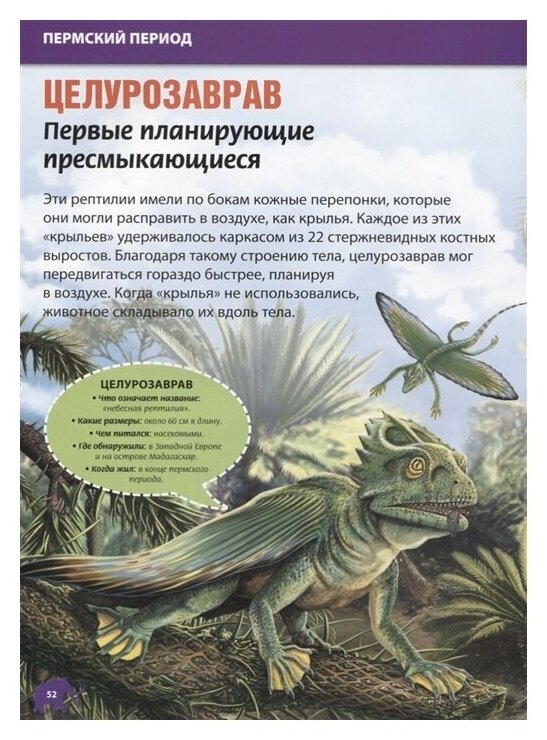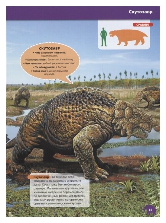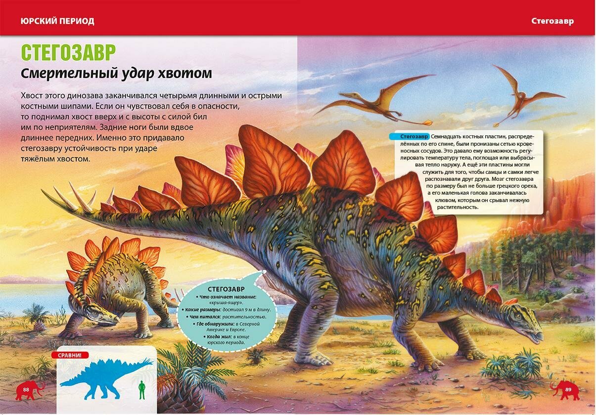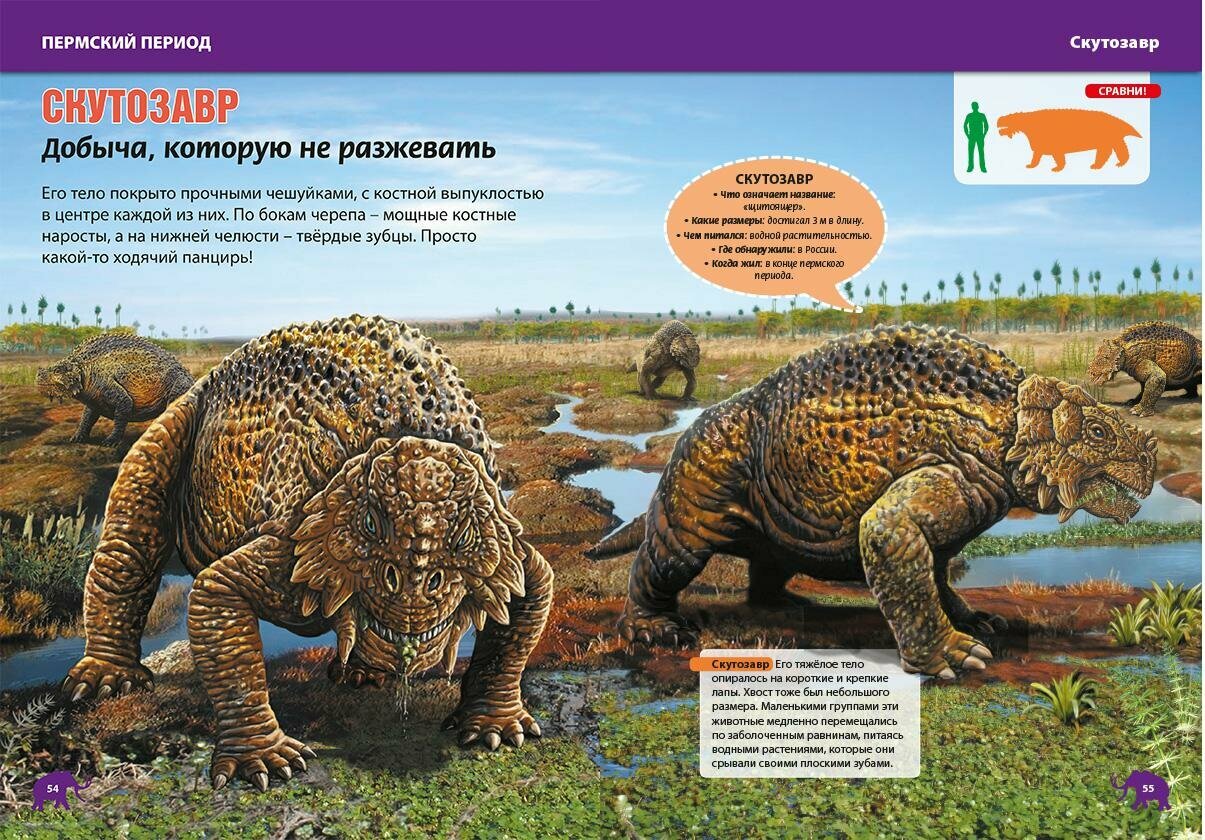 Мир динозавров и доисторических животных огромен и многообразен. Постоянное изменение климата на Земле вынуждало приспосабливаться и изменяться все живые существа. Огромные стрекозы с размахом крыльев, как у утки, или маленькие лошадки размером с собаку - вот примеры такого приспособления. Из этой красочной энциклопедии ты сможешь узнать большое количество интересных сведений и необычных фактов о динозаврах и доисторических животных: орнитолестес был самым быстрым хищным динозавром, мощный динозавр протоцератопс был травоядным и мог защищаться только огромным клювом и панцирем вокруг шеи, у диметродона, хищной рептилии, на спине был парус, который работал как солнечная батарея, а у птеригота, морского скорпиона, было целых четыре глаза. Надеемся, что на страницах нашей книги ты сможешь узнать много нового и получишь большое удовольствие от путешествия по доисторическому миру!