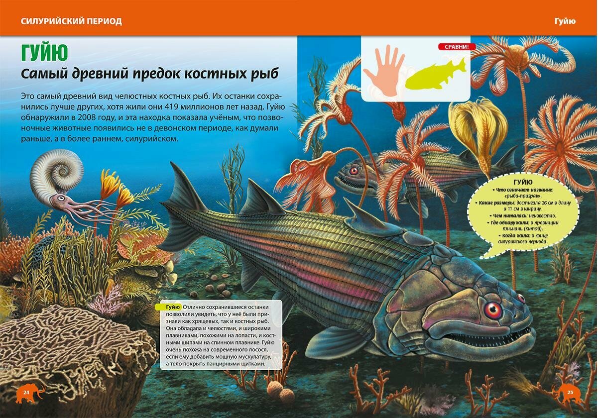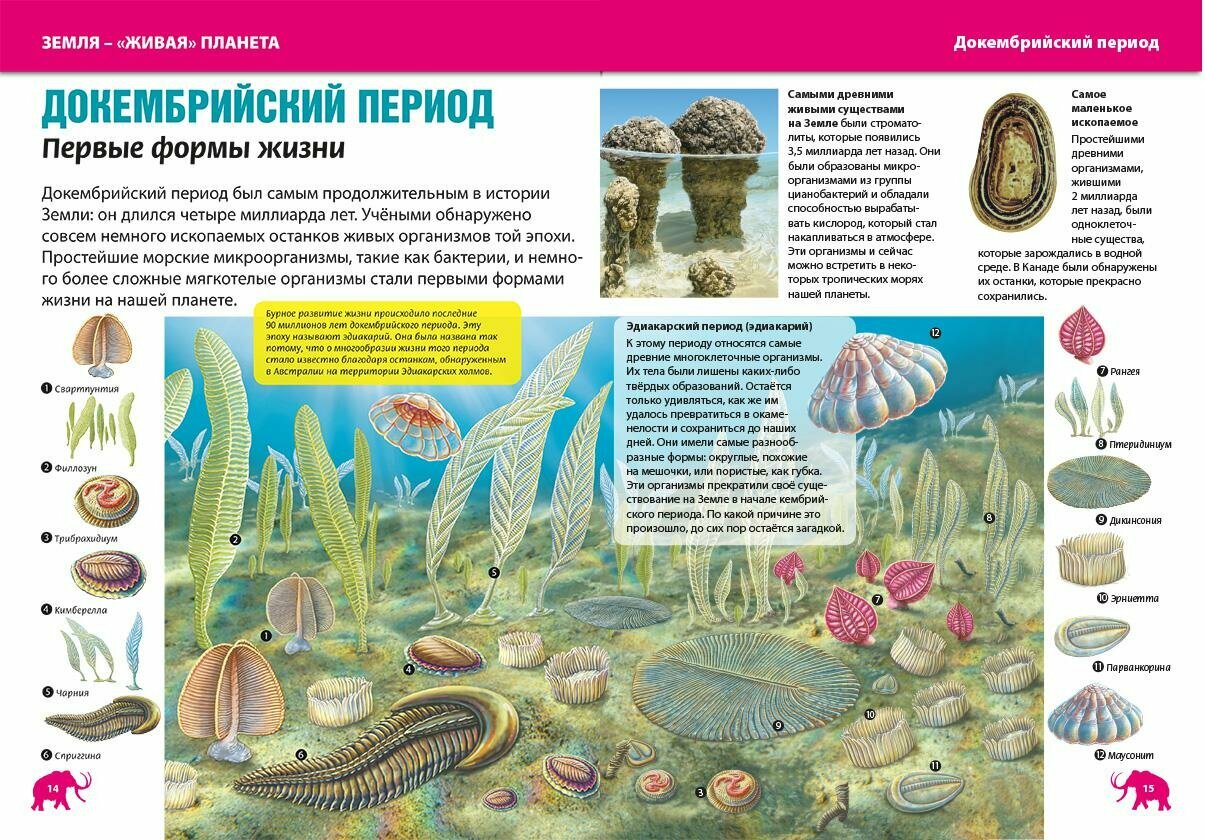 Замечательная книга. Объёмная, с красочными иллюстрациями, большого формата. Для ребенка 6 лет все понятно, написано доступным языком. По каждому периоду, каждому животному информации не много и это плюс. Есть также глава о появлении первых людей. Отличный подарок для всех, кто интересуется доисторическими обитателями.