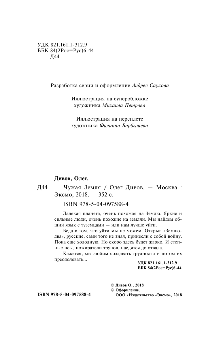 Книга: Чужая Земля (Олег Игоревич Дивов); Эксмо, 2018