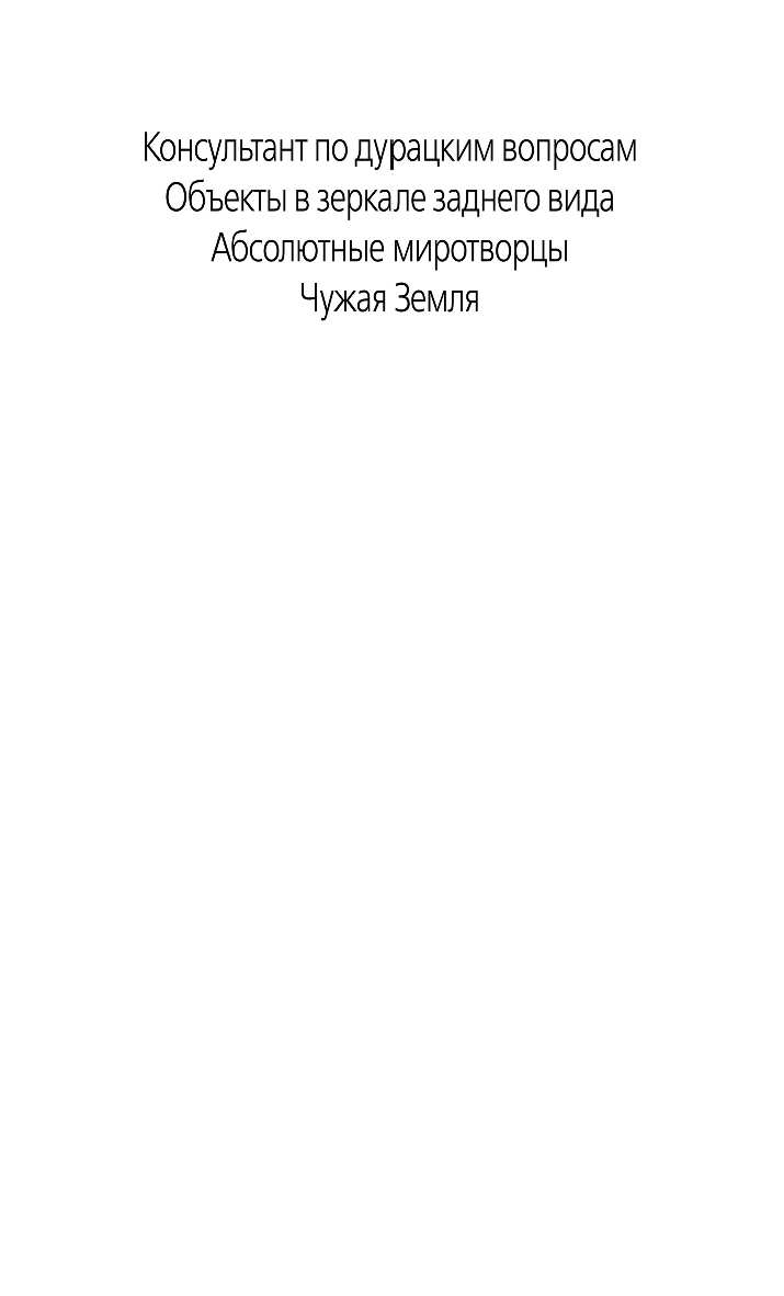 Новая книга Олега Дивова написана в "фирменной" манере: немного ироничное, немного загадочное увлекательное повествание о "неземле", но и о Земле - тоже. Если коротко, то - о разных людях в разных, чаще экстремальных, обстоятельствах.