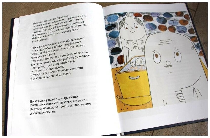 История рассказывает про малыша, появившегося в семье привидений. Малютка Лабан с удовольствием помогал маме в домашних делах, но никак не мог справиться с папиной наукой – как стать настоящим привидением, как наповал пугать людей. Лабан очень переживал, что у него плохо получается пугать людей. Переживал как настоящий ребенок переживает свои детские неудачи. Тут автор очень правдиво написал.