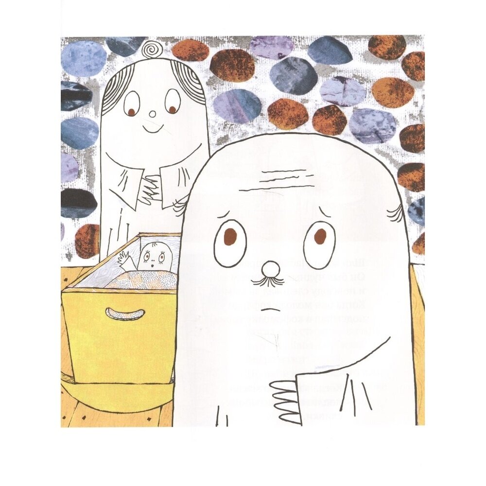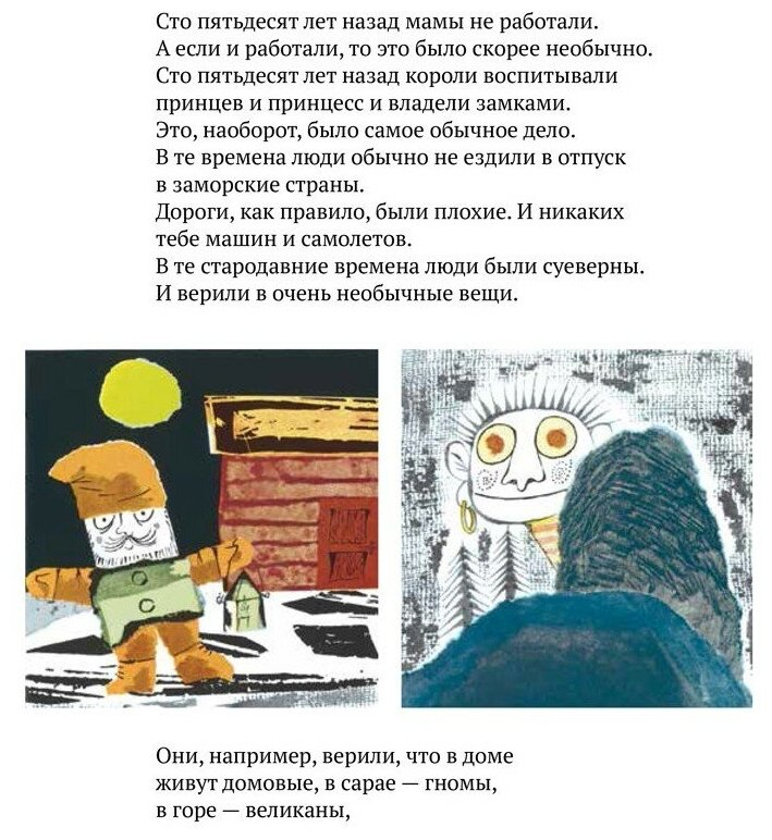 В книге непривычная верстка текста. Сам текст удобный, читабельный и очень крупный. Поэтому для первого чтения очень сильно советую. Я же взяла ее для маленького – ему очень пришлись по душе крупные семейные иллюстрации.