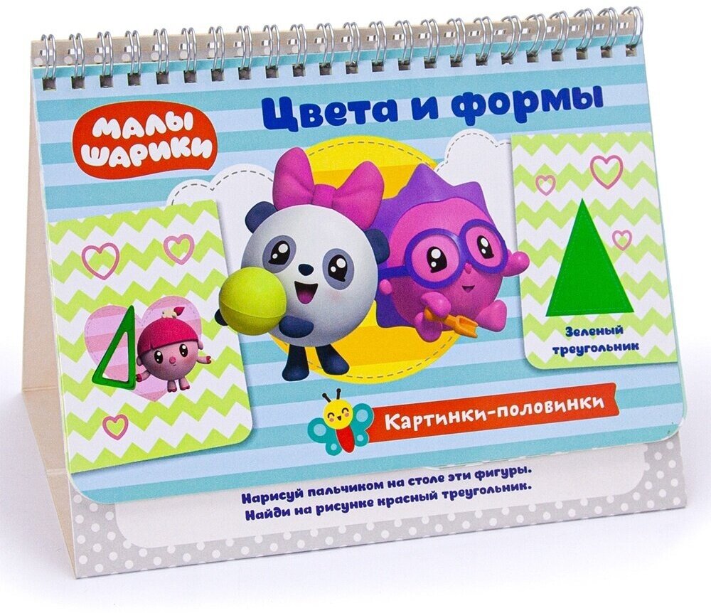 Из трех наборов с перекидными карточками про малышариков этот имеет самое большое количество рисунков на карточках. Даже не знаю, хорошо это или нет. Ребенок иногда теряется. С цветами справляется хорошо, с формами пока трудновато.