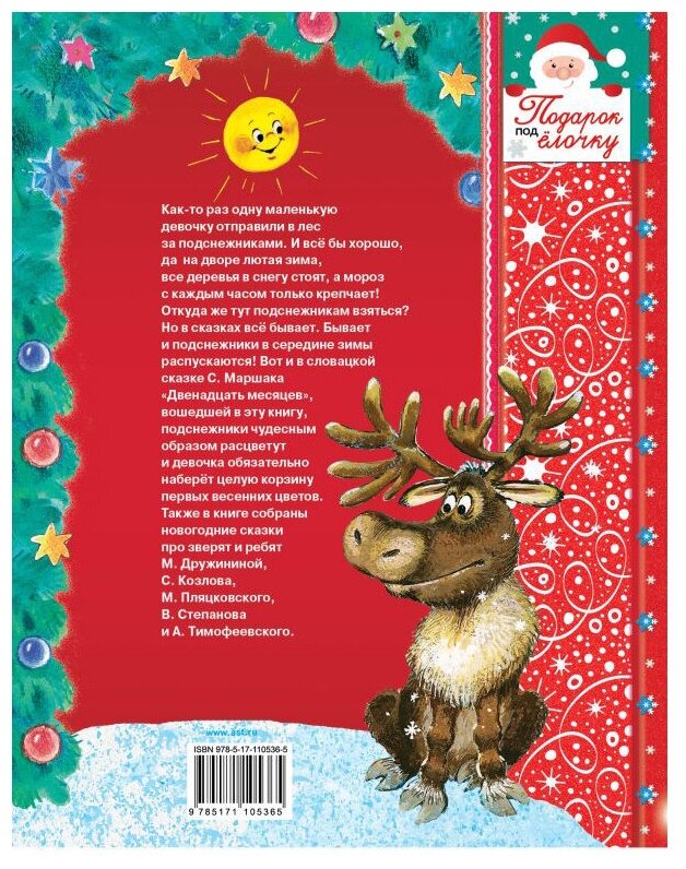 Как-то раз одну маленькую девочку отправили в лес за подснежниками. И всё бы хорошо, да на дворе лютая зима, все деревья в снегу стоят, а мороз с каждым часом только крепчает! Откуда же тут подснежникам взяться? Но в сказках всё бывает. Бывает, и подснежники в середине зимы распускаются! Вот и в словацкой сказке С. Маршака «Двенадцать месяцев», вошедшей в эту книгу, подснежники чудесным образом расцветут и девочка обязательно наберёт целую корзину первых весенних цветов. Также в книге собраны новогодние сказки про зверят и ребят М. Дружининой, С. Козлова, М. Пляцковского, В. Степанова и А. Тимофеевского.