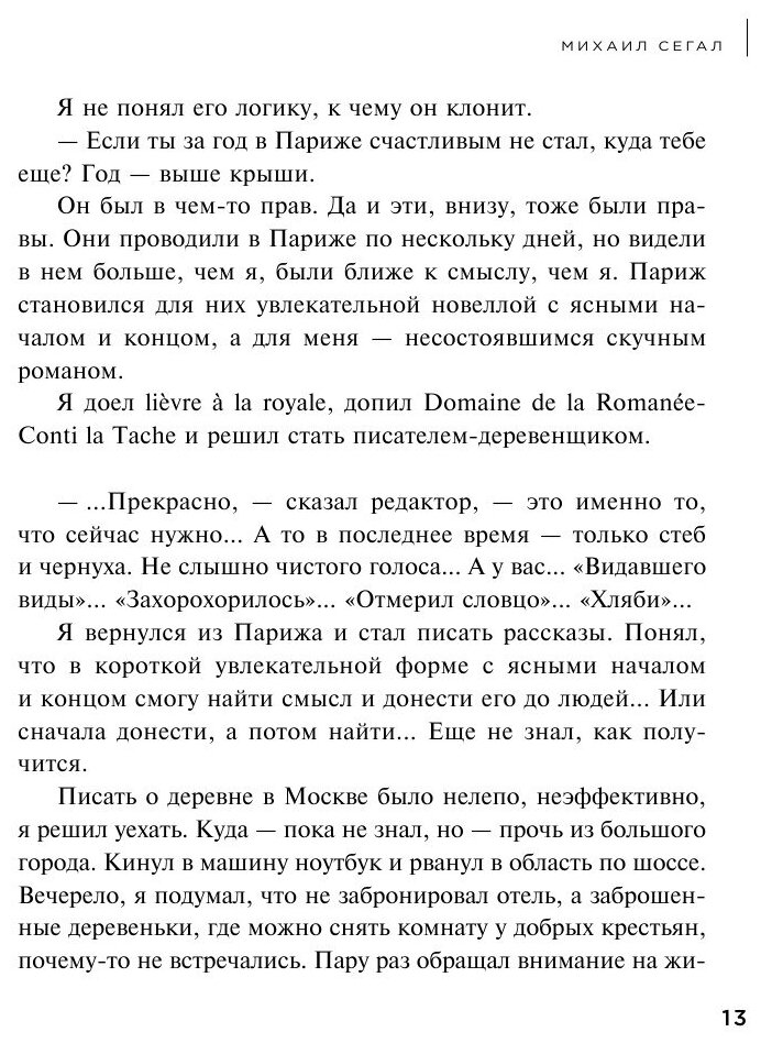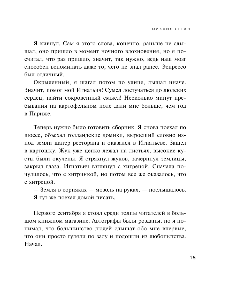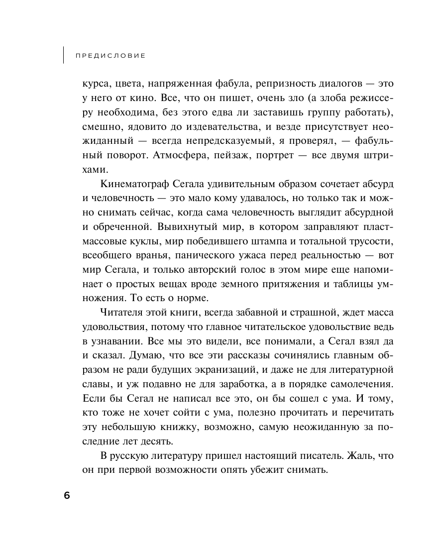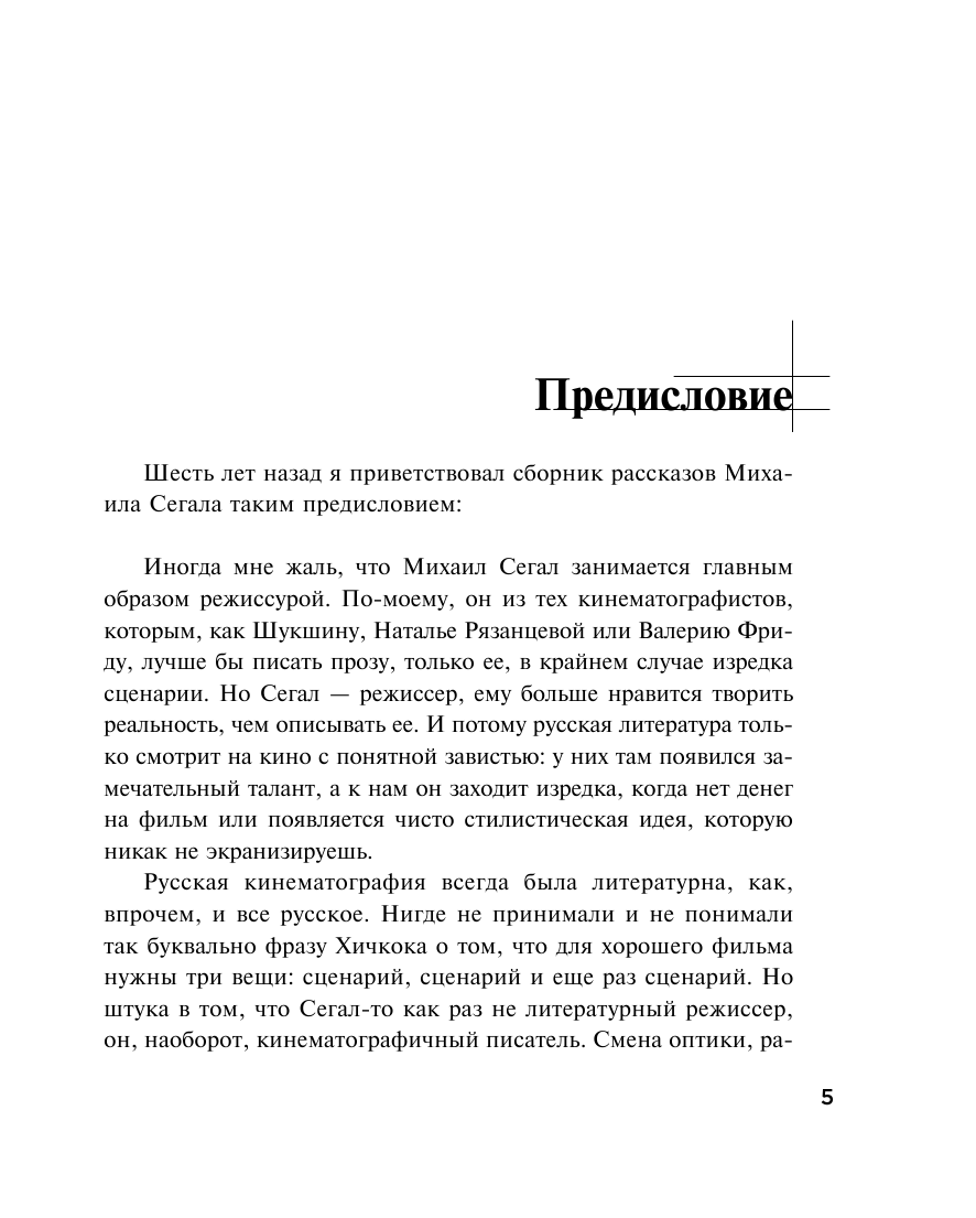 В книгу вошла малая проза М. Сегала, воплотившаяся в его фильме "Рассказы" и дополненная новыми сочинениями. В этом сборнике нет ни одного банального сюжета, каждый рассказ - откровение, способное изменить наше представление о жизни.