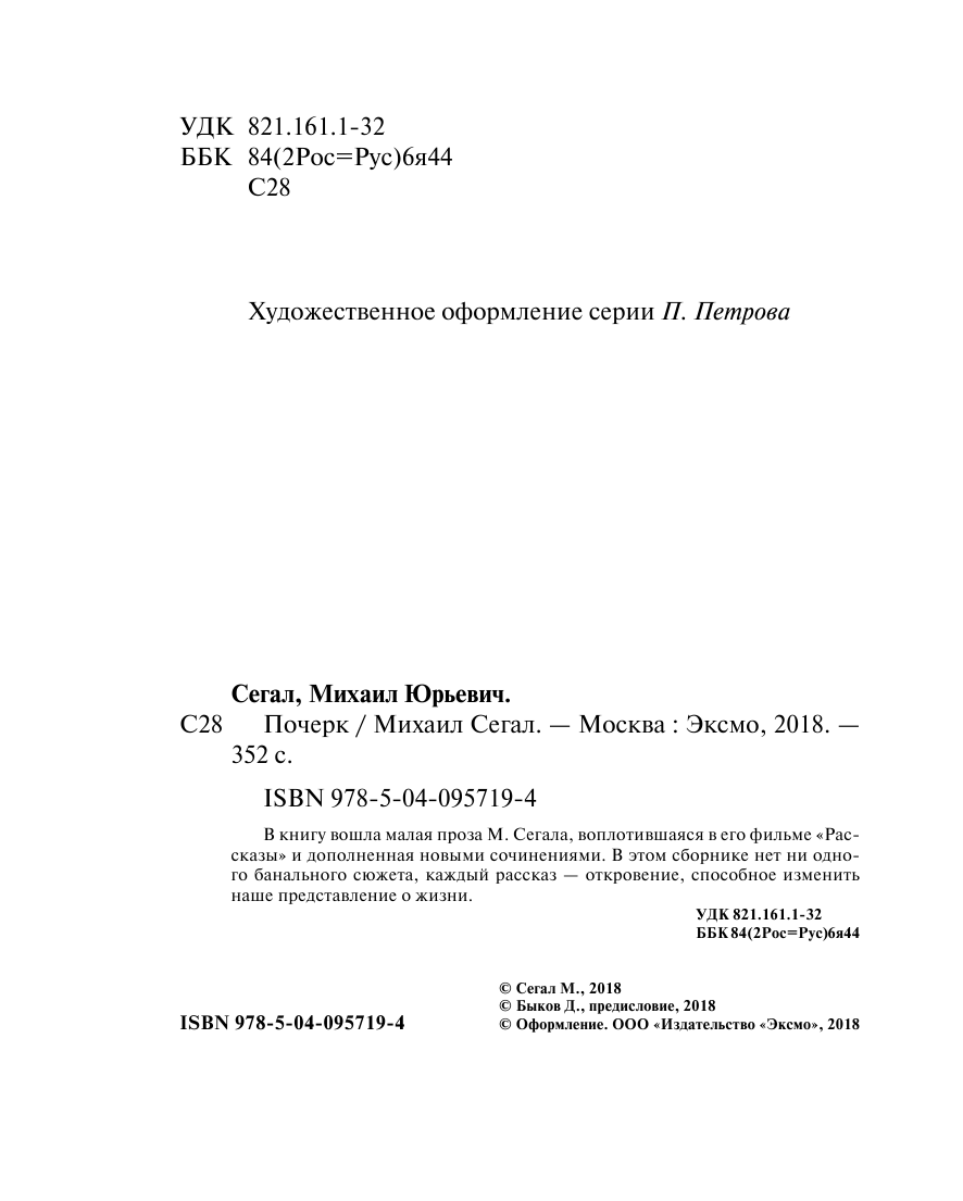 Книга: Почерк (Сегал Михаил Юрьевич); ООО "Издательство "Эксмо", 2018