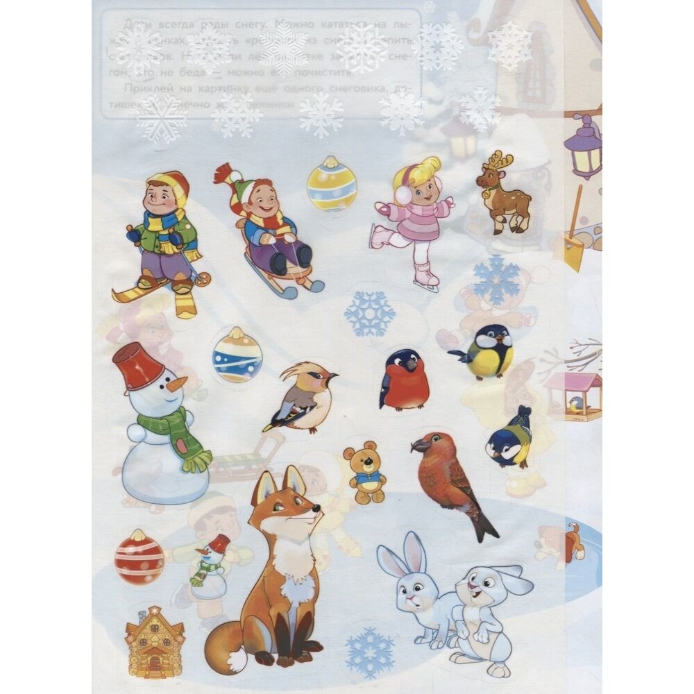 Снежинки - настоящее чудо, которое дарит нам зима. Они прилетают к нам на тучках, а потом, медленно кружась, опускаются на землю. Если поймать снежинки на рукавичку и рассмотреть, то они все необыкновенно красивые и все - разные. В этой книжке среди наклеек очень много снежинок. Они тоже очень красивые. И тоже все разные. Выбирай, какие тебе больше нравятся, и приклеивай их на картинки.