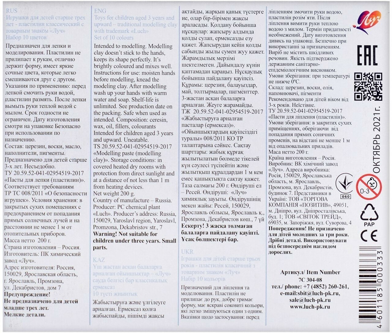 Пластилин Луч Детство 10 цв. 200г 7С 304-08