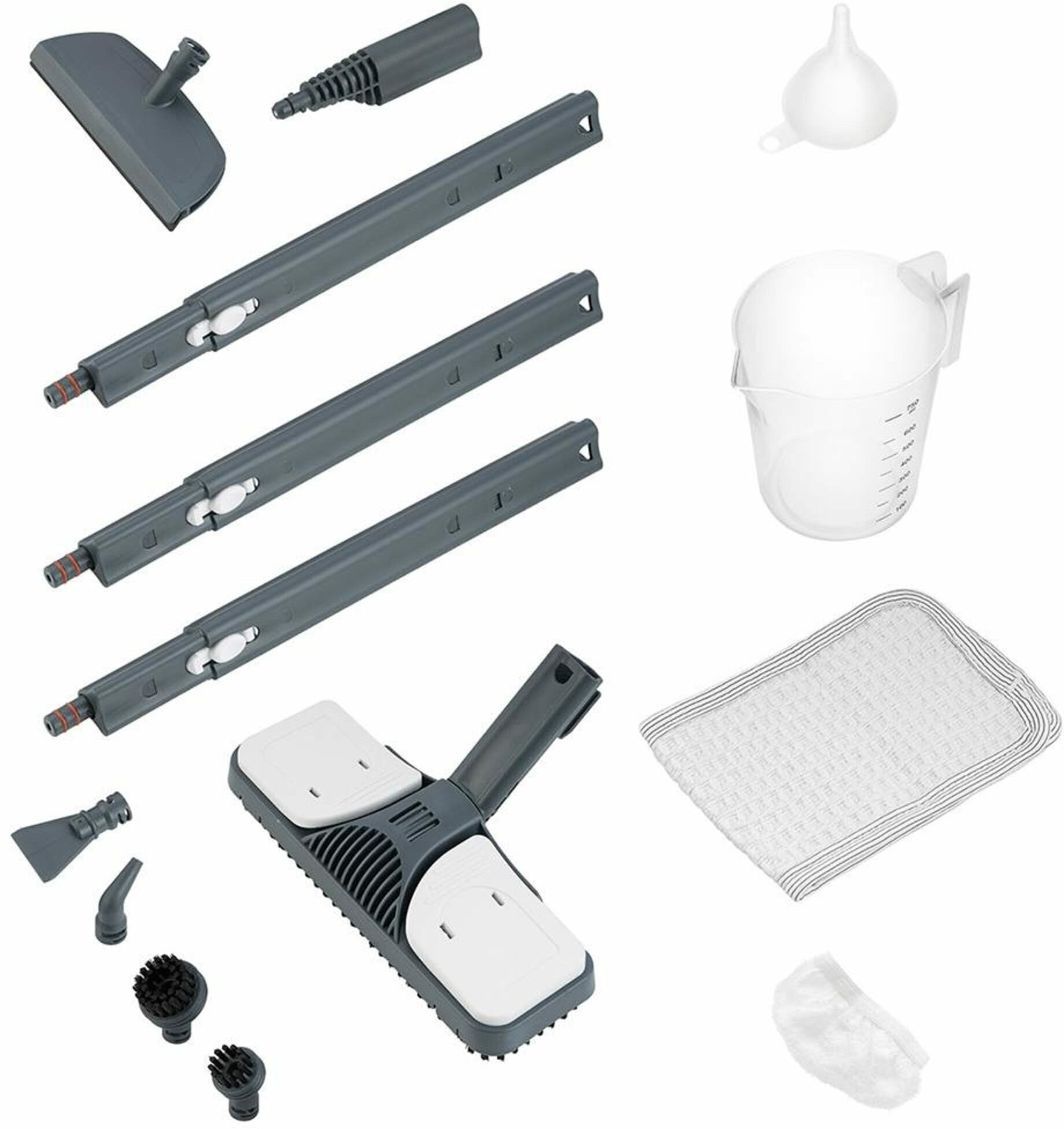 - В прилагаемой инструкции указано больше насадок, чем по факту, причем на сайте производителя их тоже меньше. Видимо инструкция устарела и комплектацию изменили. - мягкий тонкий шланг. Есть вероятность, что со временем может порваться, хотя изолента всегда поможет, если что. - ворс на большой пластиковой щетке нельзя убрать. При мытье полов мешает.