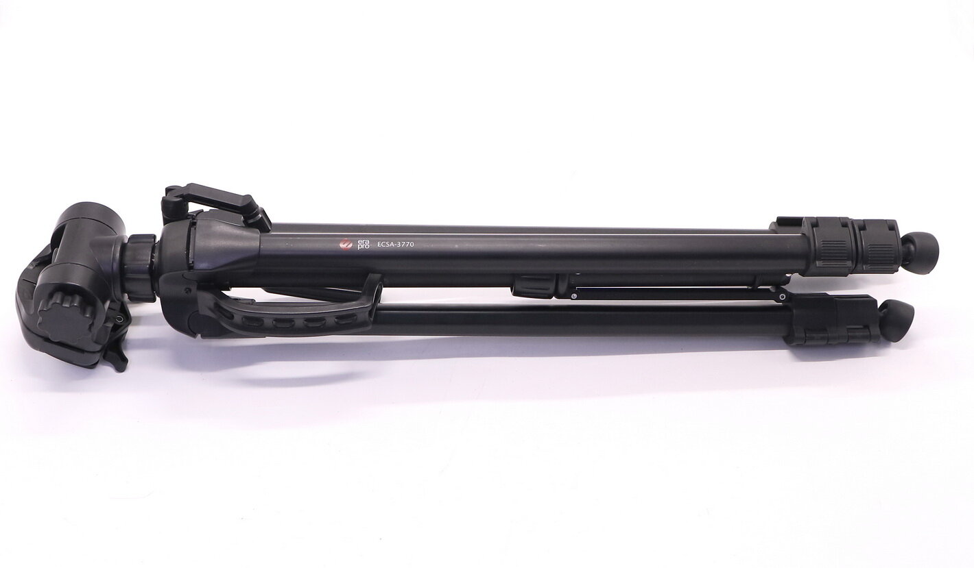 Особенности штатива ERA ECSA-3770 Устойчивый треногий штатив ERA ECSA-3770 может использоваться для фото и видеокамер весом до 4-х кг. Благодаря компактным размерам и небольшому весу штатив удобен для переноски. Штатив оперативно раскладывается благодаря складным трехсекционным ножкам, которые быстро и надежно закрепляются замками-клипсами. Ножки оснащены резиновыми наконечниками для прочного сцепления трипода с поверхностью. Штативная голова оборудована уровнем.