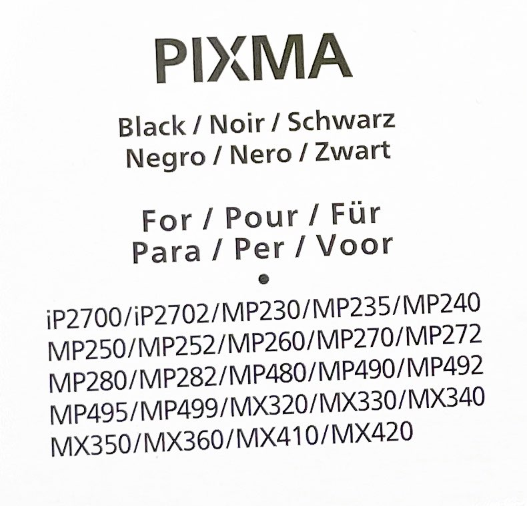 | Модель | Canon PIXMA-iP2700, Canon iP2702, Canon MP230, Canon MP240, Canon MP250, Canon MP252, Canon MP260, Canon MP270, Canon / MP272, Canon MP280, Canon MP282, Canon MP480, Canon MP490, Canon MP492, Canon MP495, Canon MP499, Canon MX320, Canon MX330, Canon MX340, Canon MX350, Canon MX360, Canon MX410, Canon MX420 |