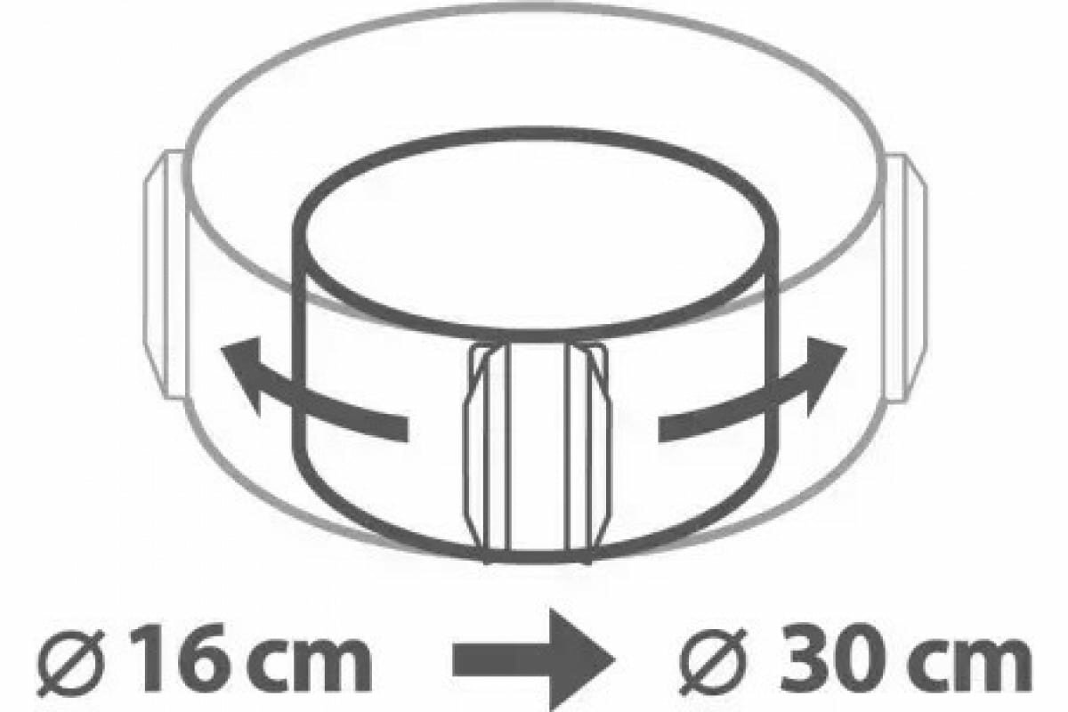 Удобная форма для выпечки торта решает проблему выбора размера формы раз и навсегда. Кольцо- трансформер используется для выпечки коржей разного диаметра - от 16 до 30 см. Высокостойкое антипригарное покрытие позволяет готовить без масла, блюда не пригорают и легко отстают от стенок. Применение: Перед использованием растяните форму до нужного размера, металлическое кольцо передвиньте на 2 см от края. При выпечке в форме следует замешивать более густое тесто.
