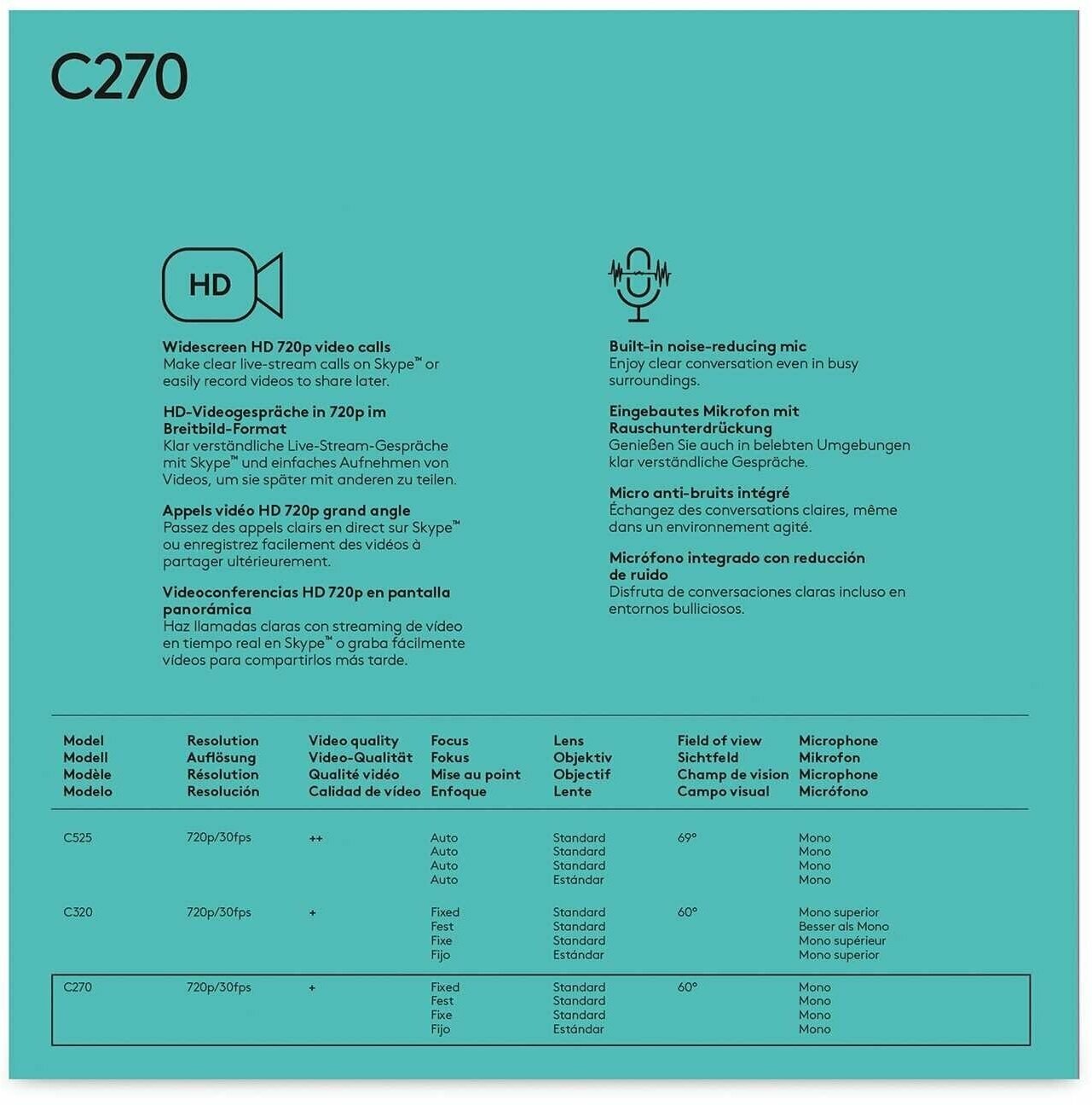 Веб-камера Logitech C270 - действительно простые видеовызовы в формате высокой четкости с разрешением 720p через большинство основных клиентов для обмена мгновенными сообщениями, включая Logitech Vid HD. Видеовызовы высокой четкости: Видеовызовы в формате высокой четкости с разрешением 720p через большинство распространенных клиентов для обмена мгновенными сообщениями и через Logitech Vid HD.