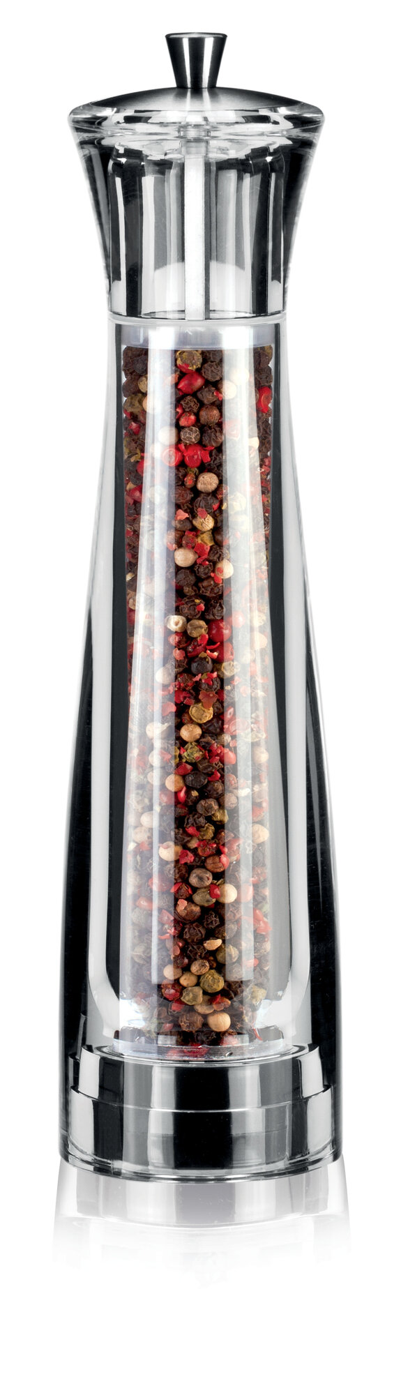 Мельница для перца Tescoma VIRGO оснащена первоклассным керамическим механизмом с регулятором помола. Мельница изготовлена из прочного прозрачного пластика и нержавеющей стали.
