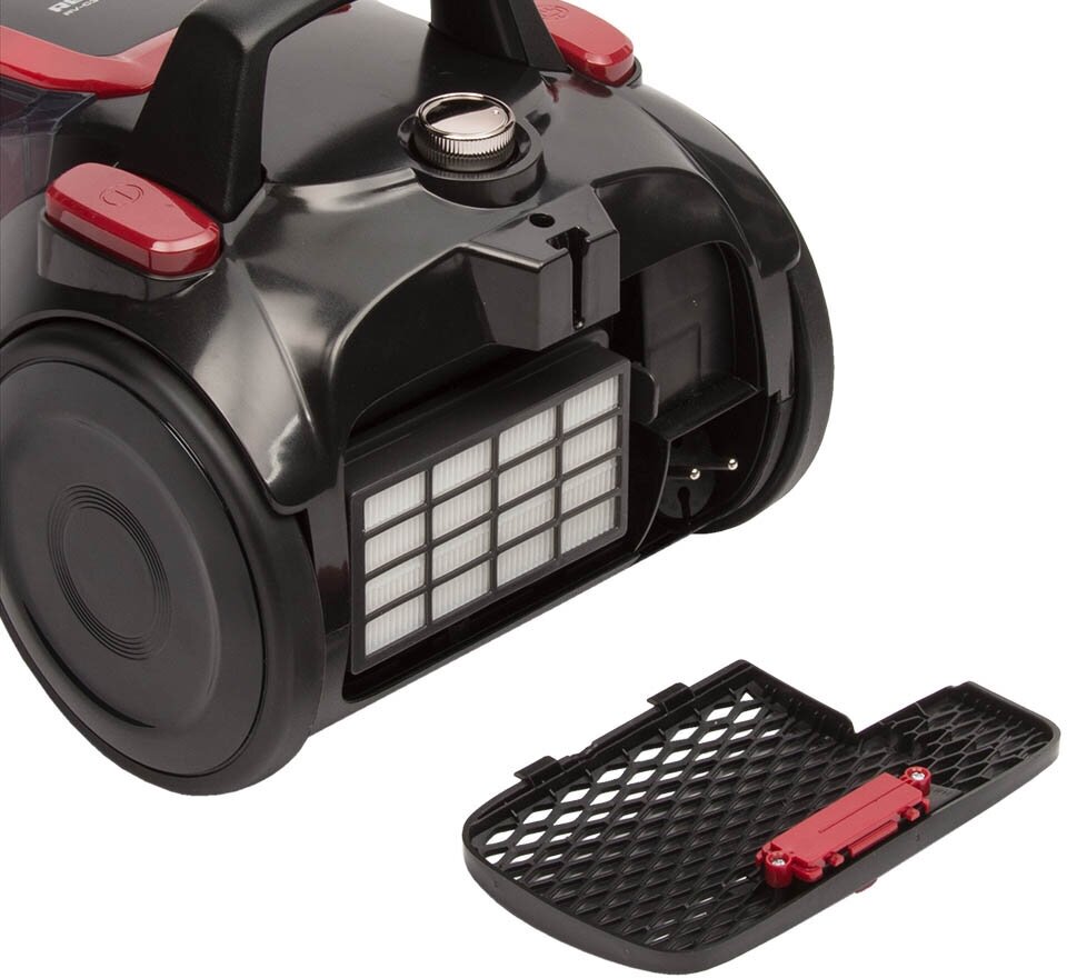 Пылесос REDMOND – это компактный и удобный в использовании прибор, который задерживает даже микрочастицы пыли. Циклоническая система очистки работает по принципу циклонической системы очистки. На первом этапе воздух вместе с пылью попадает в отсек с конусным сепаратором. Благодаря центробежной силе крупные частицы пыли вращаются в вихревом потоке и прижимаются к стенкам, после чего опадают в контейнер для пыли. На этой стадии отделяется 85% частиц пыли. Благодаря циклонической системе устройство работает без потери мощности вне зависимости от уровня наполнения пылесборника или степени засорения фильтров.Гипоаллергенный фильтр НЕРАВыходящий из пылесоса воздух, прежде чем попасть обратно в комнату, проходит через выпускной фильтр НЕРА-13. Фильтр тонкой очистки дополнительно задерживает микрочастицы пыли и большинство воздушных аллергенов. Удобство использованияШнур длиной 5 метров позволяет не переключать прибор из розетки в розетку, а быстро и удобно провести уборку во всей комнате: удалить пыль со шкафов, из-под мебели, в труднодоступных местах.Подходит для уборки различных поверхностейВ комплекте с предусмотрено несколько насадок:Универсальная щетка походит для очистки полов с гладким покрытием или ковров с коротким ворсом. Специальная щетка для мягкой мебели и щелевая насадка «2 в 1» подойдут для уборки труднодоступных мест: плинтусов, полов под мебелью или в углах.