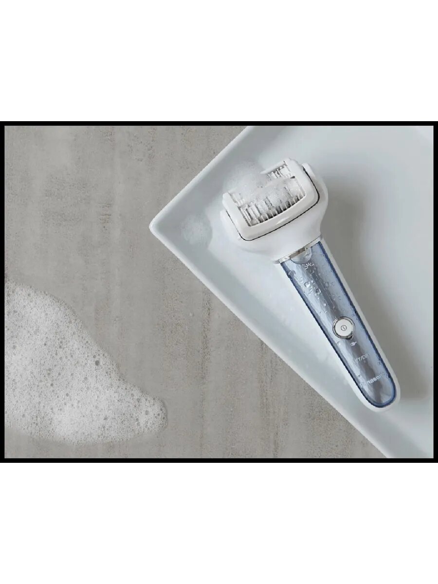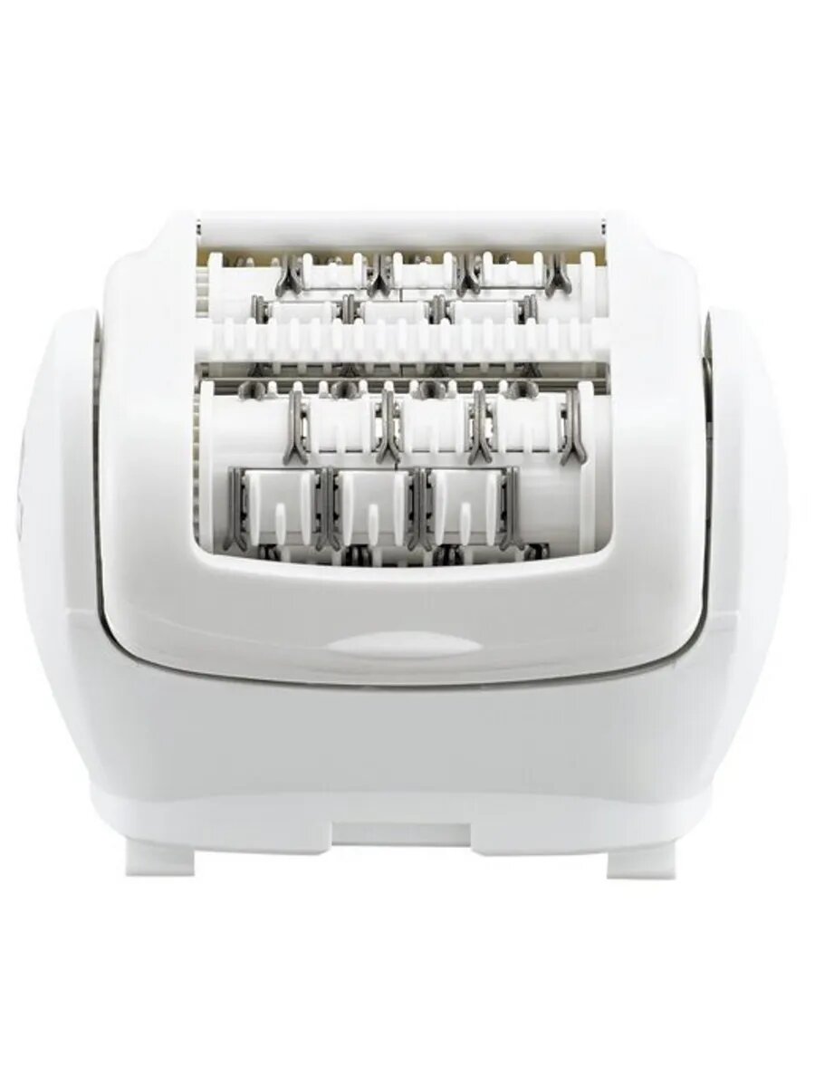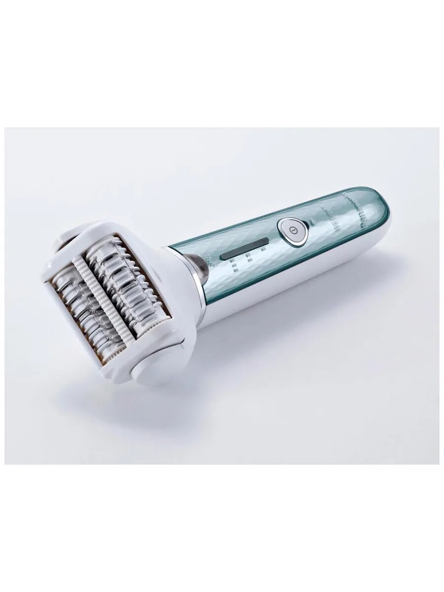 Эпилятор для сухой/влажной эпиляции имеет абсолютно новую форму, увеличенную на 30% головку и двойную систему дисков на 60 пинцетов Головка бритвы увеличена на 30%: по сравнению с обычными моделями бреющая головка шириной 32.4 мм захватывает на 30% больше площади и удаляет больше волос за одно движение, ускоряя процесс эпиляции Разносторонний наклон головки на 90° позволяет идеально повторять все контуры тела: головка может изменять угол наклона до 90°, оставаясь плотно прижатой к коже.