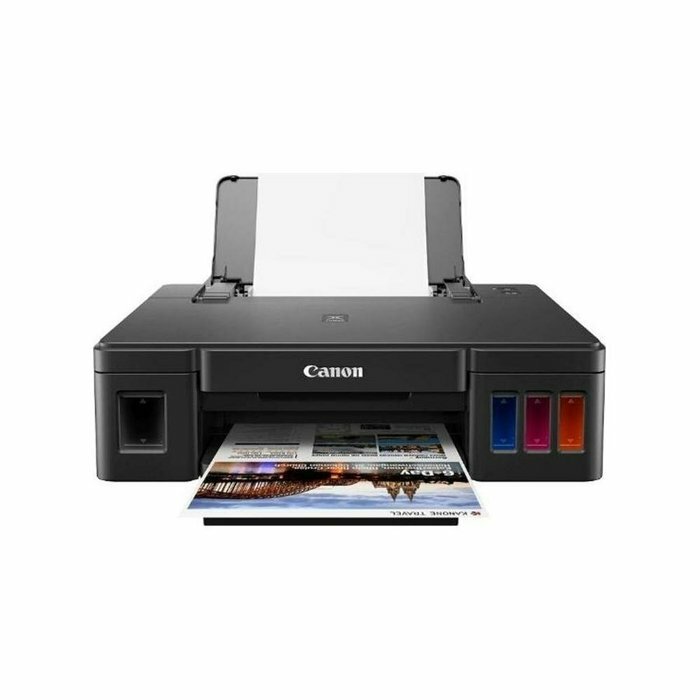 Струйный принтер Canon PIXMA G1410 – высокопроизводительная модель, подходящая для тиражирования фотографий и цветных документов. Вместо обычных картриджей в нем используются емкости для чернил, позволяющие печатать до 6–7 тысяч листов со стандартным заполнением без перезаправки. Вместительный податчик бумаги с откидным держателем делает его очень удобным. Устройство работает с пигментной черной краской и водорастворимыми цветными чернилами.