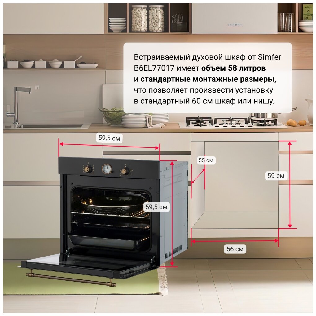 | Габариты духовки (ВxШxГ) (см) | 59.5x59.5x56.5 |