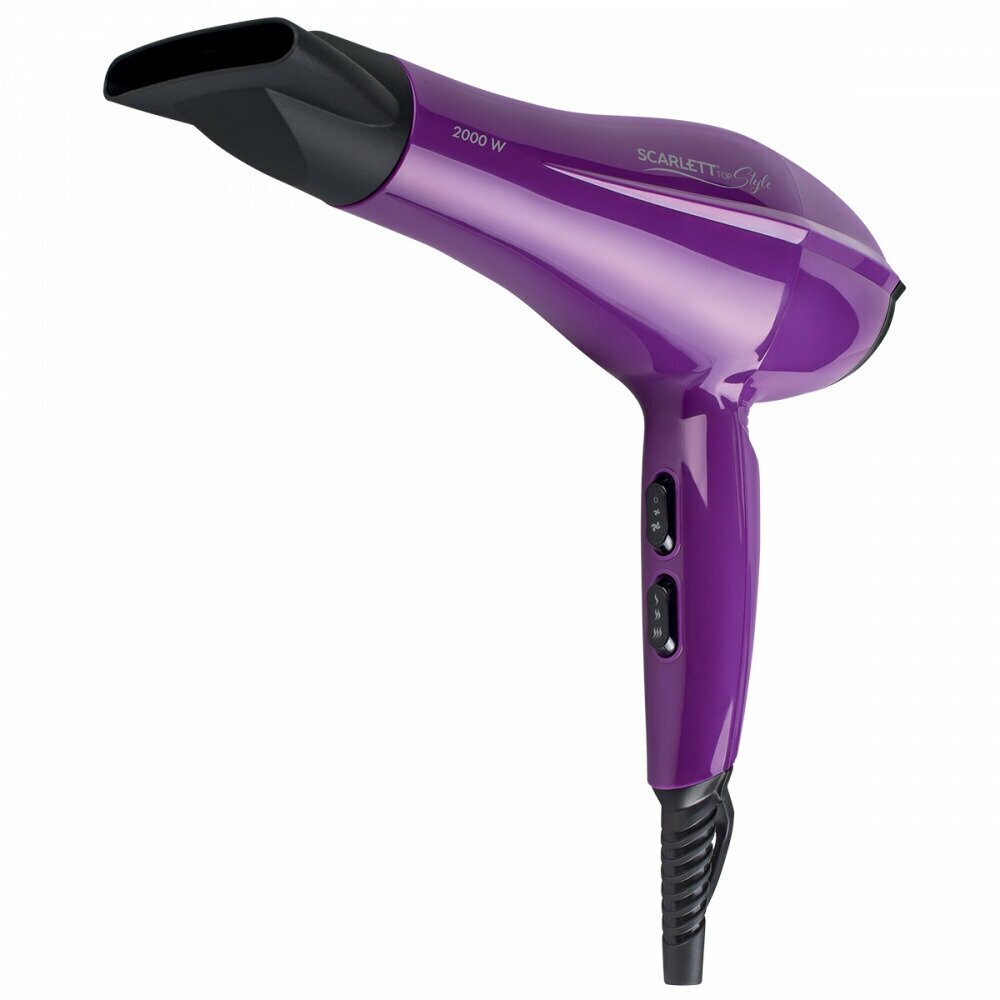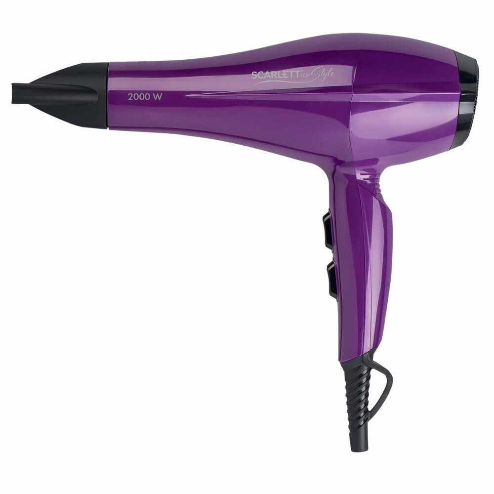 Фен Scarlett - стильный инструмент для сушки волос и моделирования прически. Добейтесь желаемого результата благодаря двум скоростям подачи воздуха и трем температурным режимам! Функция «холодный воздух» пригодится на последнем этапе для закрепления укладки. Ионизированный поток воздуха сохранит естественную структуру волос и нейтрализует статическое электричество.