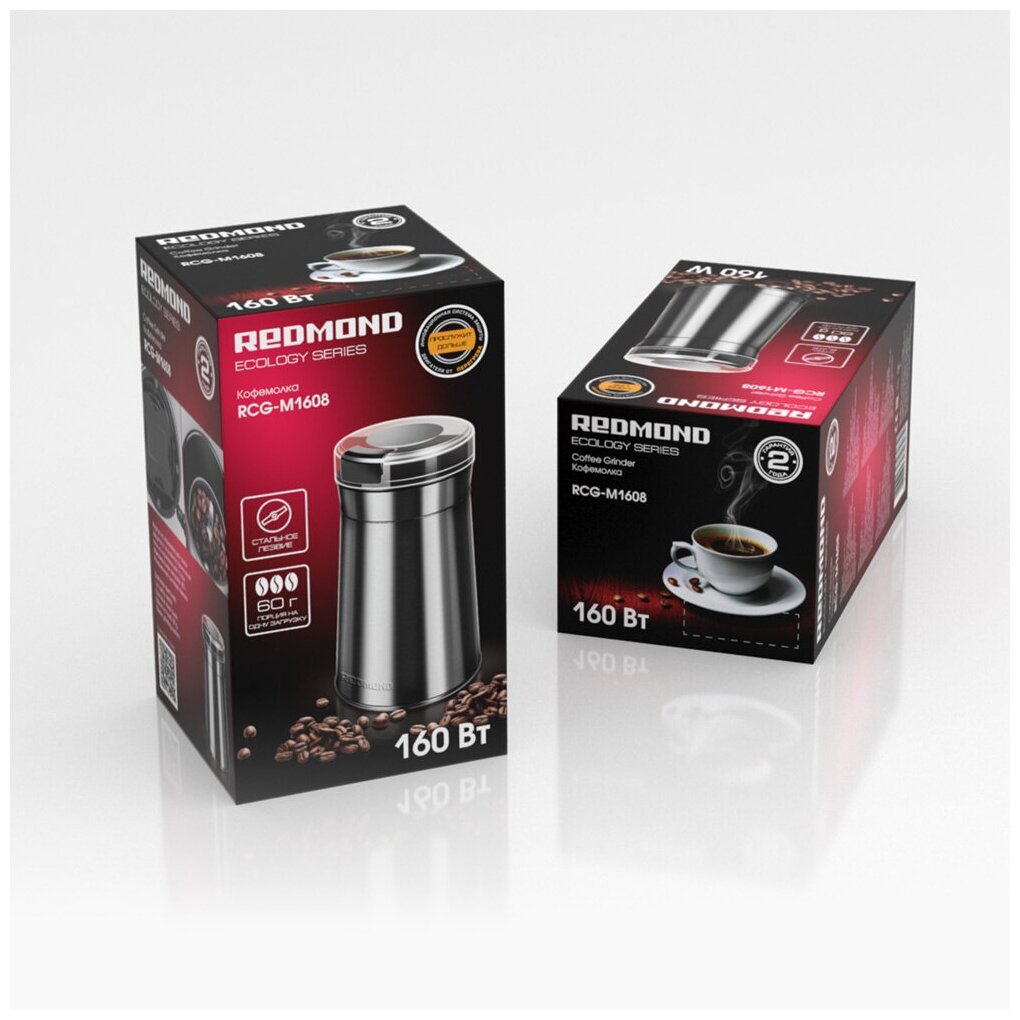 - Молотый кофе за секунды: кофемолка REDMOND RCG-M1608