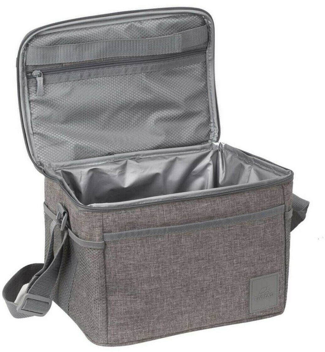 Сумка идеальна для любителей простоты и эргономики. Элегантная, стильная меланжевая ткань светло-серого цвета обеспечит оптимальную термоизоляцию содержимого сумки и уменьшит интенсивность нагрева корпуса сумки солнечными лучами. К сожалению, изотермические сумки часто изготавливаются из тканей темного цвета несмотря на то, что этот цвет активно поглощает тепло, и сумки сильно нагреваются. С эстетичной и функциональной изотермической сумкой RivaCase вы будете выглядеть изысканно и стильно, а её содержимое будет всегда свежим и охлаждённым.Резиновый логотип RivaCase