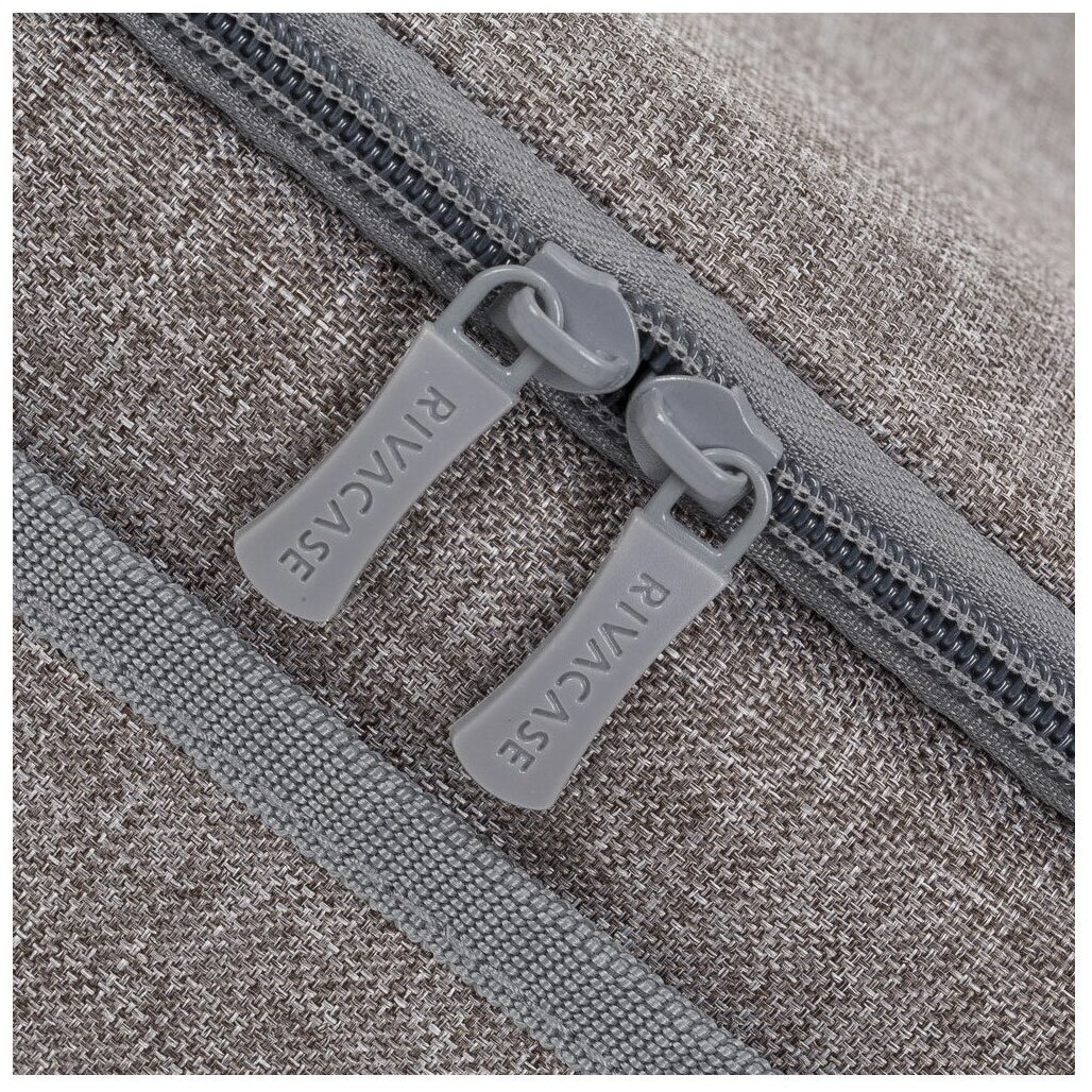 Чтобы вам не пришлось искать эти мелочи дне сумки, и, в конце концов, обнаружить их случайно сломанными или не найти вообще, RivaCase предусмотрели внутренний сетчатый карман на молнии. Положите в него все эти предметы, и вы всегда будете знать, где они находятся.Светлая меланжевая ткань