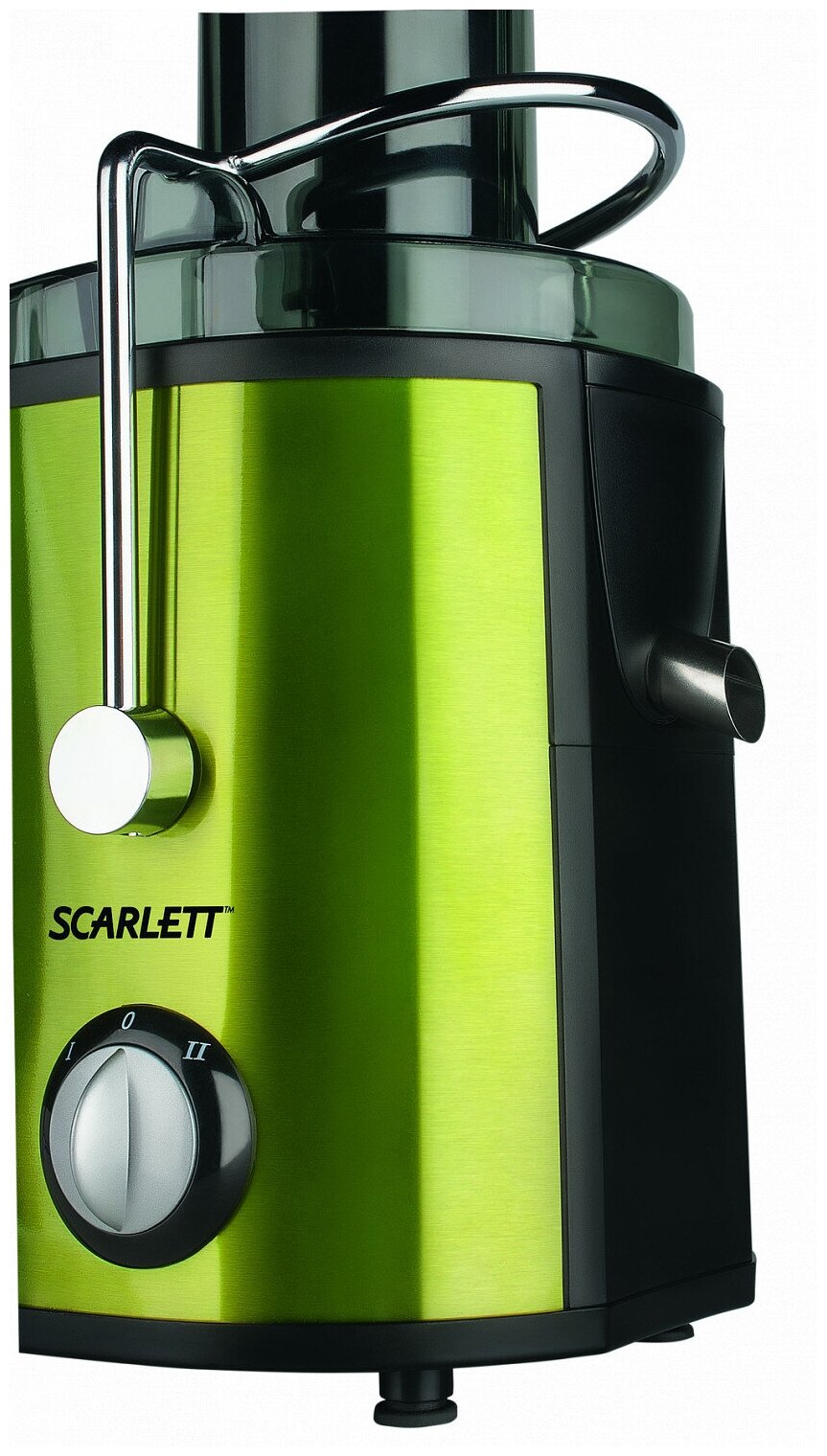 Соковыжималка Scarlett SC JE50S08 Удобная и простая в эксплуатации соковыжималка Scarlett SC-JE50S05R в стильном корпусе станет настоящим украшением вашей кухни. Прибор оснащен мощным инновационным мотором 1000 Вт и имеет плавную регулировку скоростей, благодаря чему позволяет эффективно отжимать соки из фруктов и овощей различной плотности, а широкая загрузочная горловина обеспечивает максимальный комфорт в использовании.