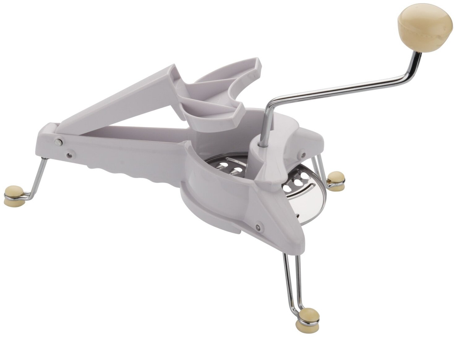 Роторная терка AXON 5 в 1 (A-215)Многофункциональная терка AXON оснащена шестью насадками, изготовленными из качественной нержавеющей стали, и оптимально подходит для мелкой, прямой и нарезки ломтиками, а также тонкой шинковки и приготовления пюре из овощей и фруктов. В конструкции модели предусмотрен держатель для ингредиентов. Корпус произведен из высокопрочного пластика, поэтому приспособление устойчиво к деформации и износу. В терке предусмотрен регулятор толщины реза. Удалять загрязнения с модели можно в теплой воде с применением моющих средств. Комфортные условия эксплуатации обеспечиваются за счет удобной пластмассовой рукоятки. Процесс измельчения продуктов не требует особых усилий со стороны пользователя.