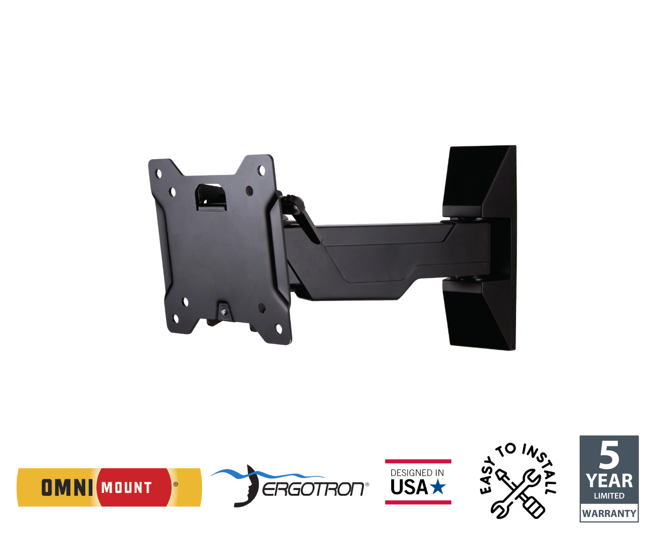 Кронштейн Omnimount — универсальная модель, которая позволит разместить телевизор как близко к стене, так и на удалении. Пользователь может регулировать расстояние в диапазоне от 82 до 240 мм. Также предусмотрена возможность выбора угла наклона до 15°: это снизит вероятность появления бликов и обеспечит более комфортный просмотр программ. Корпус произведен из высокопрочного металла и способен выдержать нагрузку до 18 кг. Компактный аксессуар полностью скрывают устройства, оснащенные жидкокристаллическим или плазменным экраном диагональю 13–37". Конфигурацией предусмотрены три группы отверстий для креплений стандарта VESA и канал для прокладки проводов.
