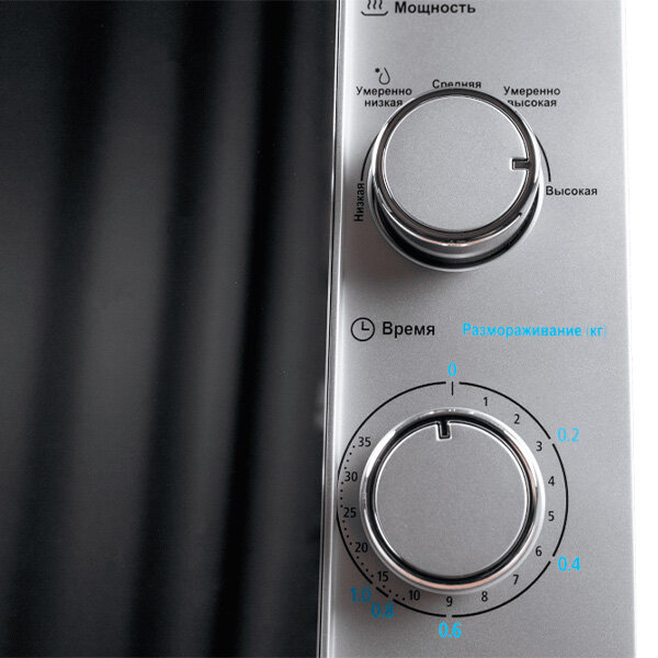 Микроволновая печь Midea C4E подойдёт для тех, кому не нужны лишние «навороты». Готовьте любимые блюда, разогревайте готовую пищу за считаные минуты и размораживайте любые продукты – в приборе есть все необходимые функции. удобно И красиво Компактная печь легко впишется даже в самую маленькую кухню и не займёт много места. Особый шарм прибору придаёт зеркальная дверца. Управляется он парой поворотных переключателей, все режимы понятно подписаны, и в них без труда разберётся любой пользователь.