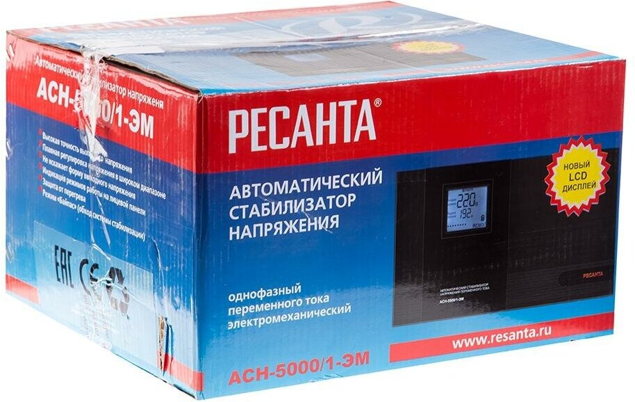 Ресанта АСН-5000/1-ЭМ — отличный стабилизатор для каждого дома Стабилизатор напряжения Ресанта АСН-5000/1-ЭМ станет надежным помощником в любой квартире, загородном доме или кафе. Устройство эффективно выравнивает колебания тока в сети, защищая электроприборы как от длительных скачков напряжения, так и от коротких импульсных всплесков. Стабилизатор прост в управлении и не требует для использования каких-либо специальных навыков.