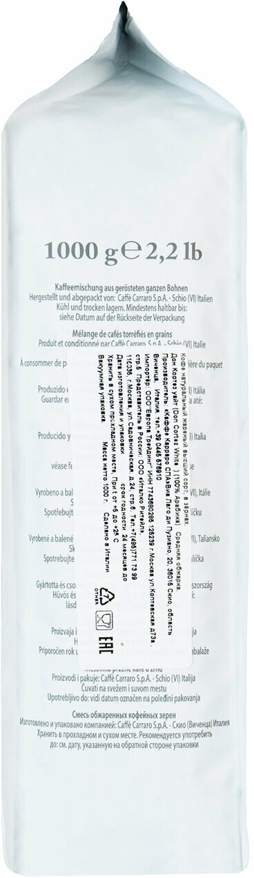 Кофе зерновой CARRARO Don Cortez White, 1 кг