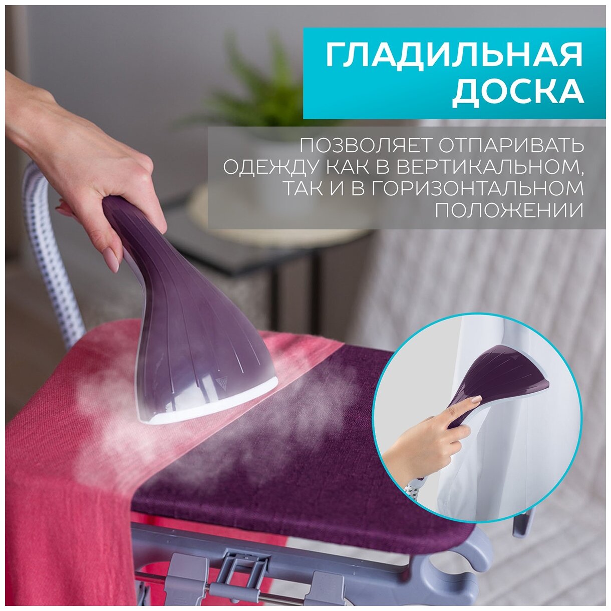 - Регулировка силы пара, дезинфекция одежды, горизонтальная и вертикальная доска.