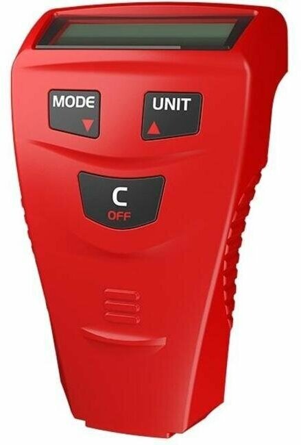 Простой и компактный. Управление прибором осуществляется при помощи трёх кнопок: включение/выключение, выбор режима измерения и выбор единиц измерения. Кнопки большие и удобные, поэтому работать с толщиномером можно даже в перчатках.