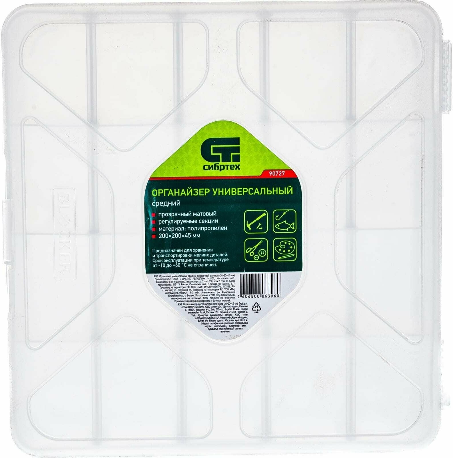 Органайзер универсальный средний 20 х 20 х 4,5 см, прозрачный матовый // Сибртех