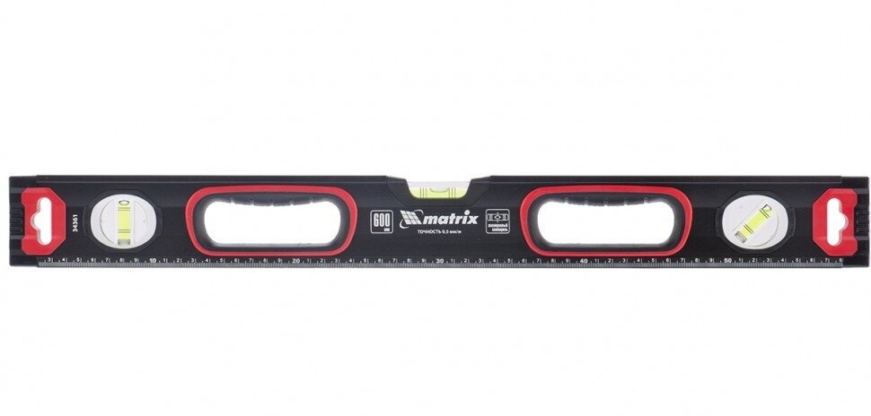 Уровень алюминиевый, усиленный, фрезерованный, 3 глазка, 2 комп. рукоятки, 600 мм// Matrix