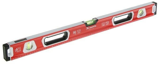 Уровень Matrix характеризуется длиной, составляющей 800 мм. Материал изготовления инструмента – алюминий. Масса уровня составляет 800 г. Это классическое цветовое решение для инструментов данного типа.