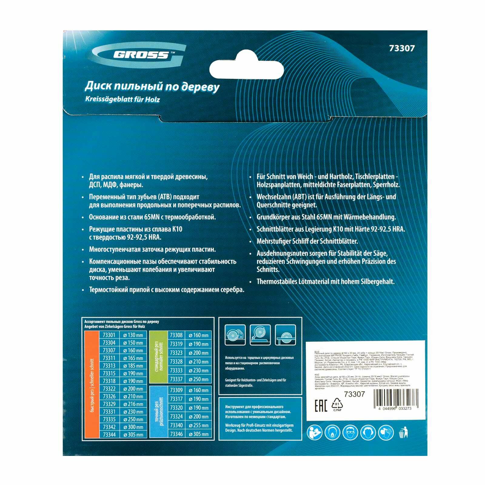Пильный диск по дереву GROSS 73307