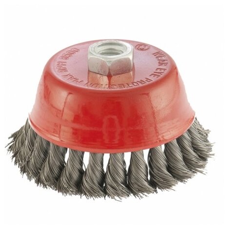 Щетка для УШМ Matrix , 100 мм, М14, чашка, крученая проволока 0,35 мм устанавливается на УШМ, поддерживающую работу со скоростью 8500 об/мин. Щетина предназначена для грубой (черновой) обработки поверхностей, менее агрессивной по сравнению с щетиной 0,5 мм. Изделие подходит для удаления загрязнений, снятия толстого слоя ржавчины, ЛКМ, зачистки сварных швов.Преимущества Прочность и долговечность — щетина из крученой стальной проволоки выдерживает значительные нагрузки Высокая производительность — насадка формы «чашка» оптимальна для зачистки больших поверхностей Универсальность — щетка подходит для обработки любых твердых материалов: металла, древесины, цветных металлов, пластика и т. д. Устойчивость к разрушению — корпус покрыт эмалью, а щетина —техническим маслом