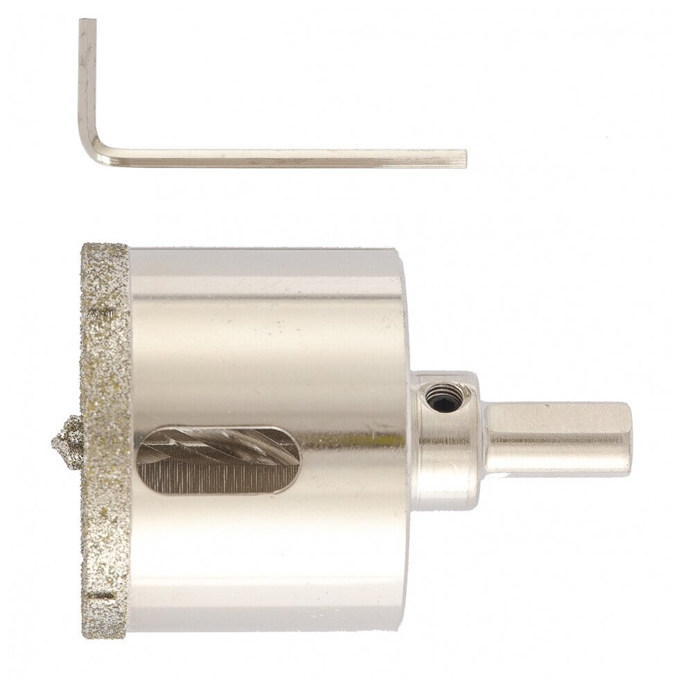 Универсальное алмазное сверло по керамограниту Matrix , 55 x 67 мм, с 3-гранным хвостовиком, применяется для сверления стекла, плитки, кафеля. А за счет высокой концентрации алмазов в режущем слое оно легко справляется с выполнением отверстий в керамограните. Сверло рассчитано на профессиональное использование с дрелями и шуруповертами. Водяное охлаждение в процессе работы значительно повысит срок его службы.