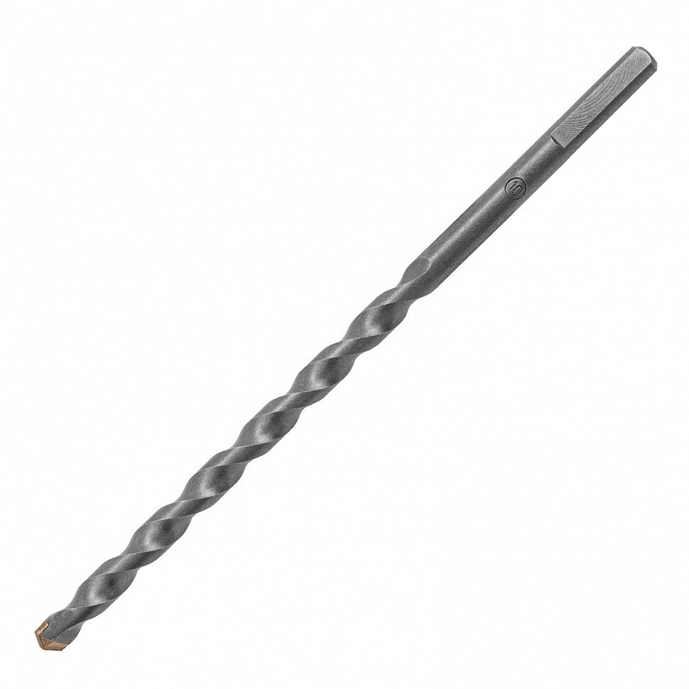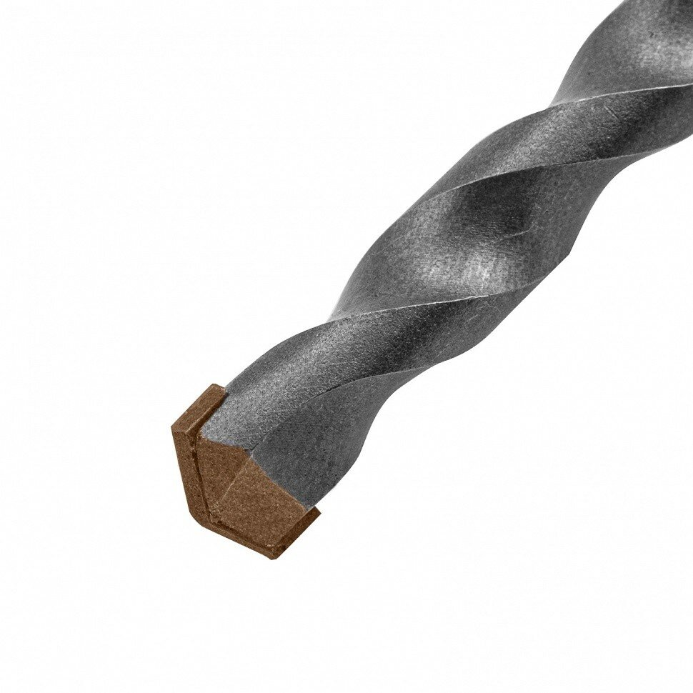 Режущим элементом инструмента является твердосплавная пластина марки ВК8. Корпус сверла изготовлен из углеродистой стали. Трехгранный хвостовик предотвращает проворот сверла в патроне дрели. Сверло предназначено для ударного сверления твердых материалов.