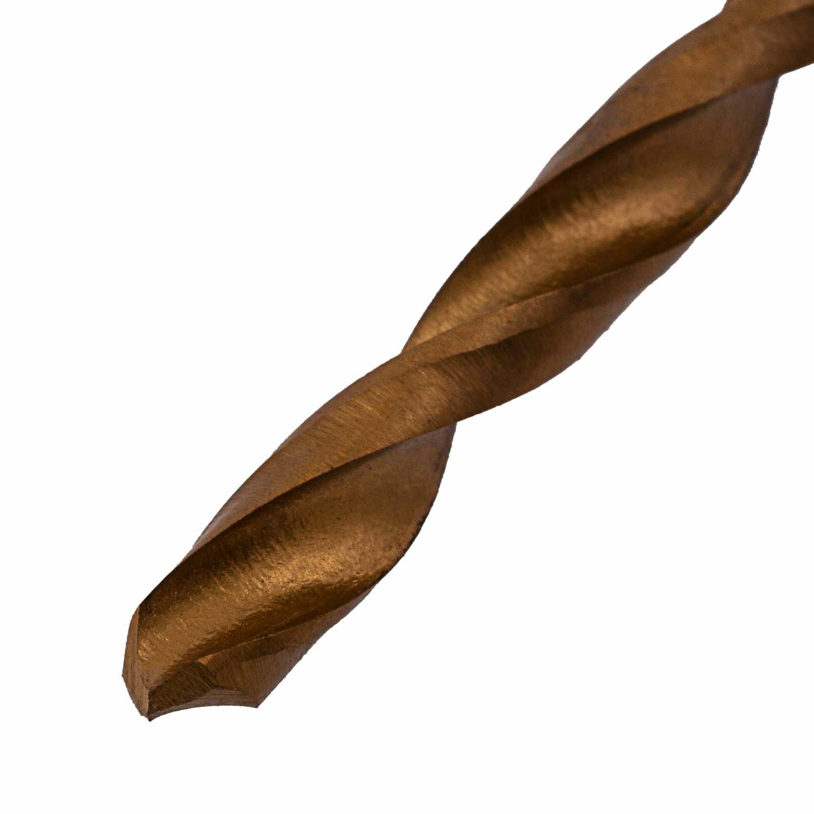 Изготовлено из инструментальной легированной стали. Поверхность сверла из титаносодержащего сплава, что значительно повышает эксплуатационные характеристики сверл по металлу (покрытие из нитрида титана увеличивает стойкость инструмента в 2–2,5 раза).