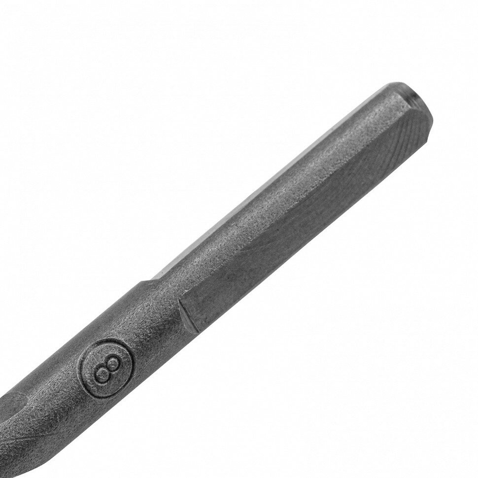 Режущим элементом инструмента является твердосплавная пластина марки ВК8. Корпус сверла изготовлен из углеродистой стали. Трехгранный хвостовик предотвращает проворот сверла в патроне дрели. Сверло предназначено для ударного сверления твердых материалов.