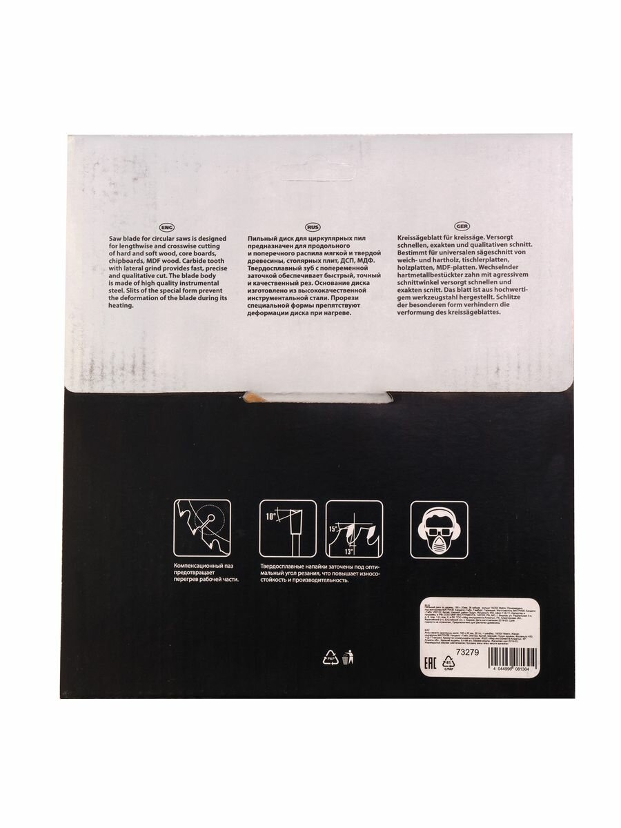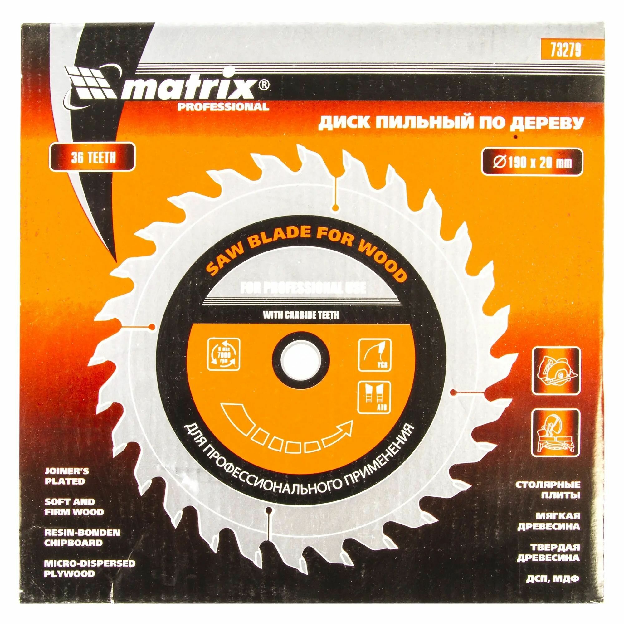 Пильный диск MATRIX Professional произведен с помощью специальная схемы заточки твердосплавных зубьев (ВК4), что позволяет производить качественную распиловку древесины. Компенсационные прорези уменьшают колебания, подавляют шумы и препятствуют изгибанию диска при нагреве.