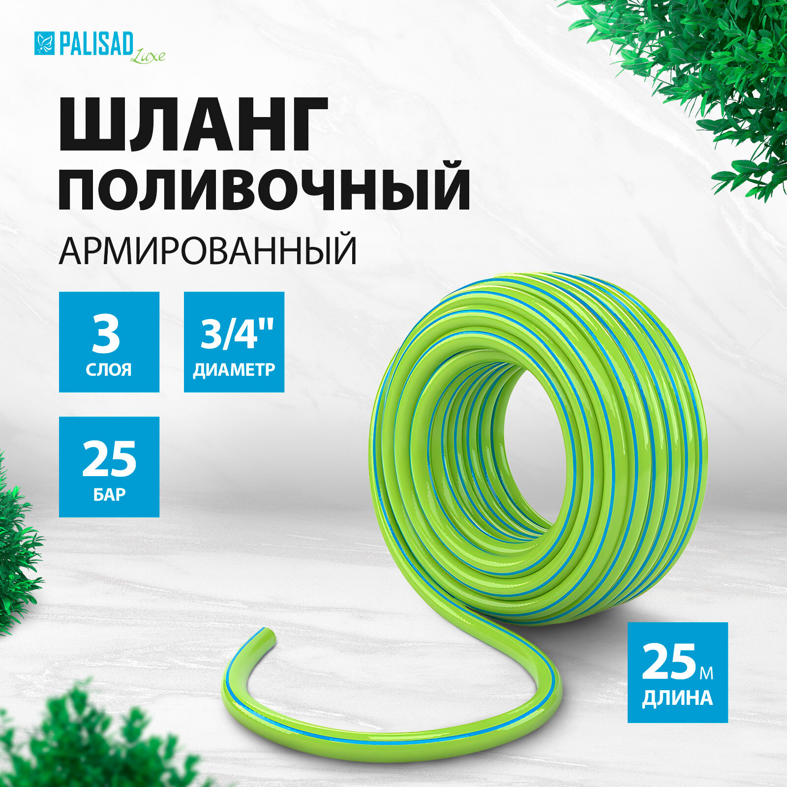 Шланг поливочный, армированный, 3-слойный 3/4", 25 м Palisad Luxe.
