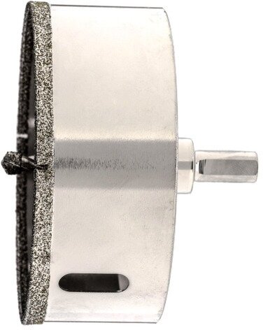 | Прочие особенности и свойства | В комплекте с алмазным кольцевым сверлом идет направляющее сверло, которое облегчает процесс засверливания и предотвращает смещение. Благодаря 3-х гранному хвостовику сверло не прокручивается в патроне во время работы. Сверление производить в безударном режиме с использованием водяного охлаждения. |