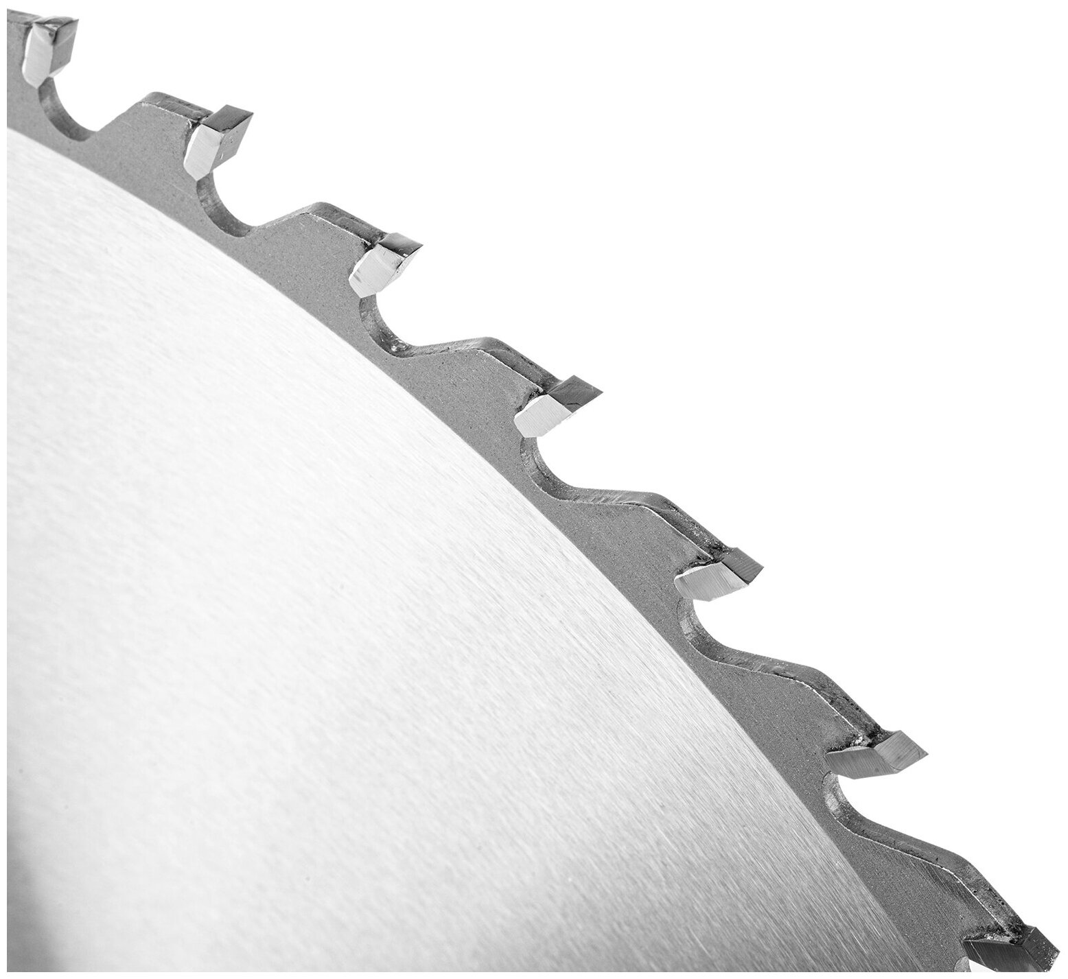 Предназначен для распиловки заготовок из мягких и твердых пород древесины, фанеры, ДСП. Изготовлен пильный диск из пружинной стали марки 65MN. Есть возможность использования переходника диаметром 30 мм. Форма зуба (ATB) с положительным углом наклона обеспечивает эффективную распиловку крупных заготовок. Режущие пластины изготовлены из твердого сплава и обладают исключительной стойкостью к окислению, истиранию и разрушению. Пайка пластины к диску осуществляется припоем с высоким содержанием серебра, гарантируя тем самым высокую надежность крепления.
