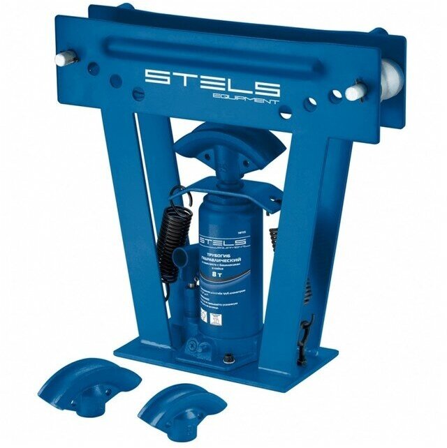 Гидравлический трубогиб Stels , в комплекте с башмаками 1/2–1 дюйм, применяется для быстрой гибки труб. За счет гидравлического привода от мастера не требуется особых усилий в процессе эксплуатации. Инструмент будет полезен в строительстве и машиностроении для сгибания труб с толщиной стенок до 4 мм в холодном состоянии до 90°. Оборудование позволяет прикладывать усилие до 8 т. При изгибании не уменьшается пропускная способность труб, поэтому они подходят для систем высокого давления.