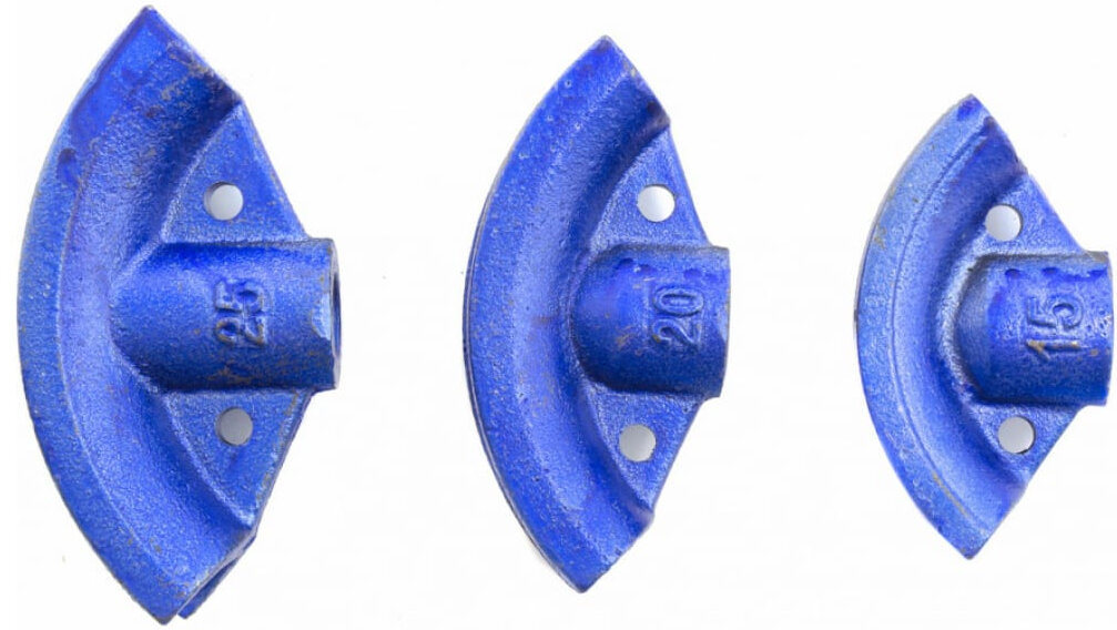 - В комплекте есть 3 насадки для сгиба труб: диаметром 1/2, 3/4 и 1 дюйм